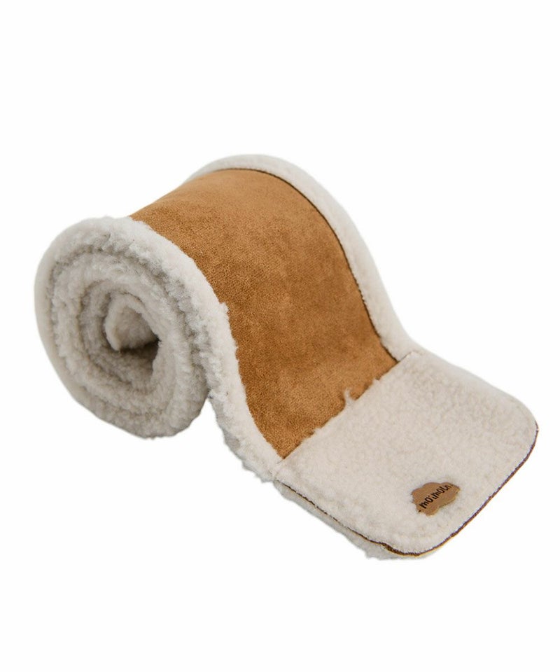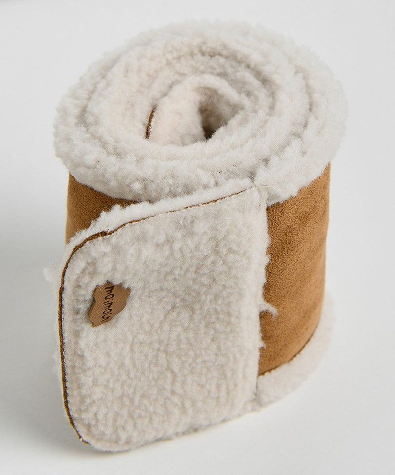 ソフトなタッチ感のムートンとロゴがポイントのマフラー。ブレディムートンコート(W244COB04P)とのコーディネートがおすすめです。
