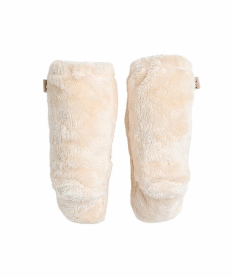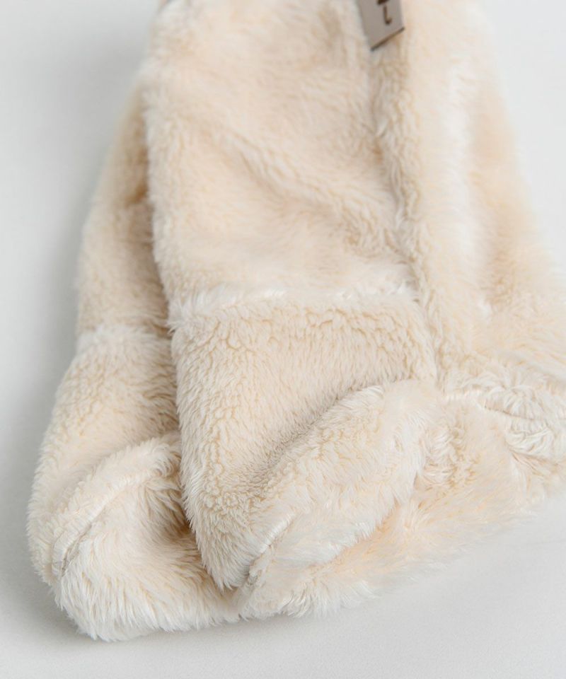 両面ボアで保温性をプラスしたフットウォーマー。ずり落ちないように手首にバンディング処理を施しているため不意に脱げなくなっているアイテム。シンプルなベージュカラーで、幅広いコーディネートに活躍します。