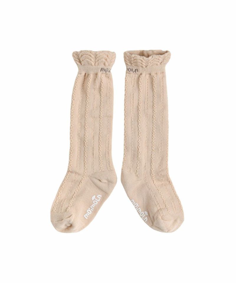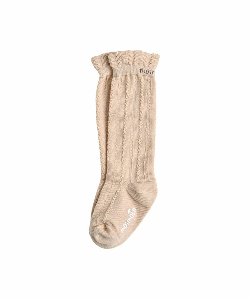 波のような模様がポイントのロングソックス。ジャカードのパターンがシンプルながらもワンピースなど様々なコーディネートが可能なアイテムです。