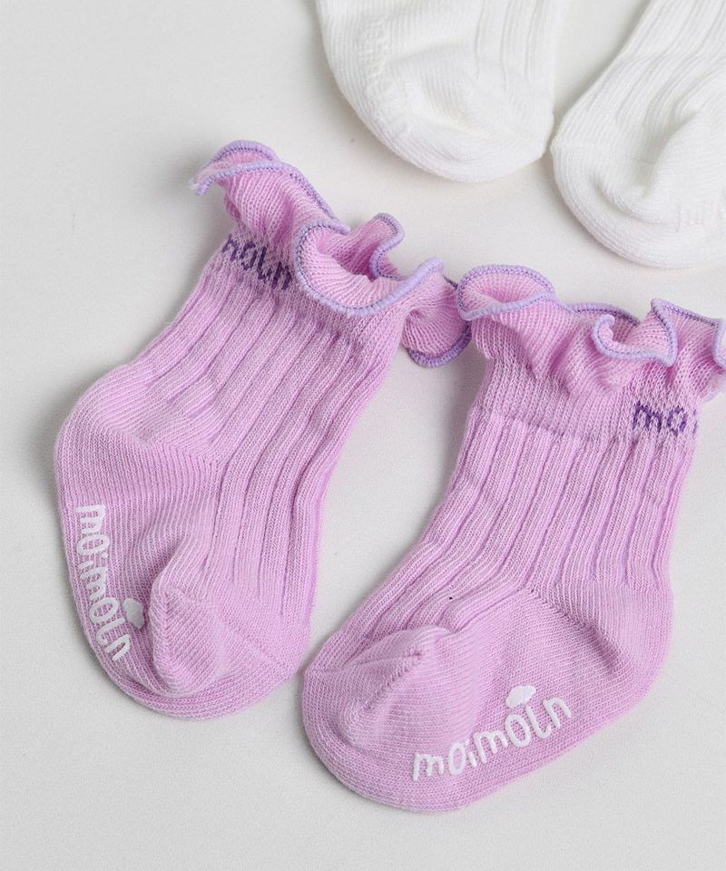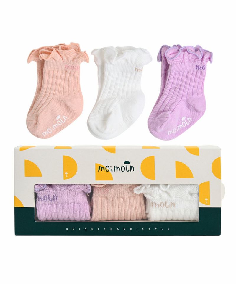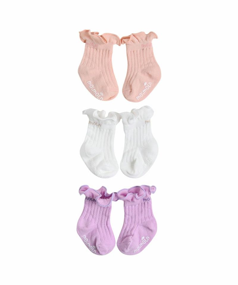 新生児用フリルデザインソックス3点セット。女の子らしいデザインがポイント♪ギフトとしても喜ばれるアイテムです。