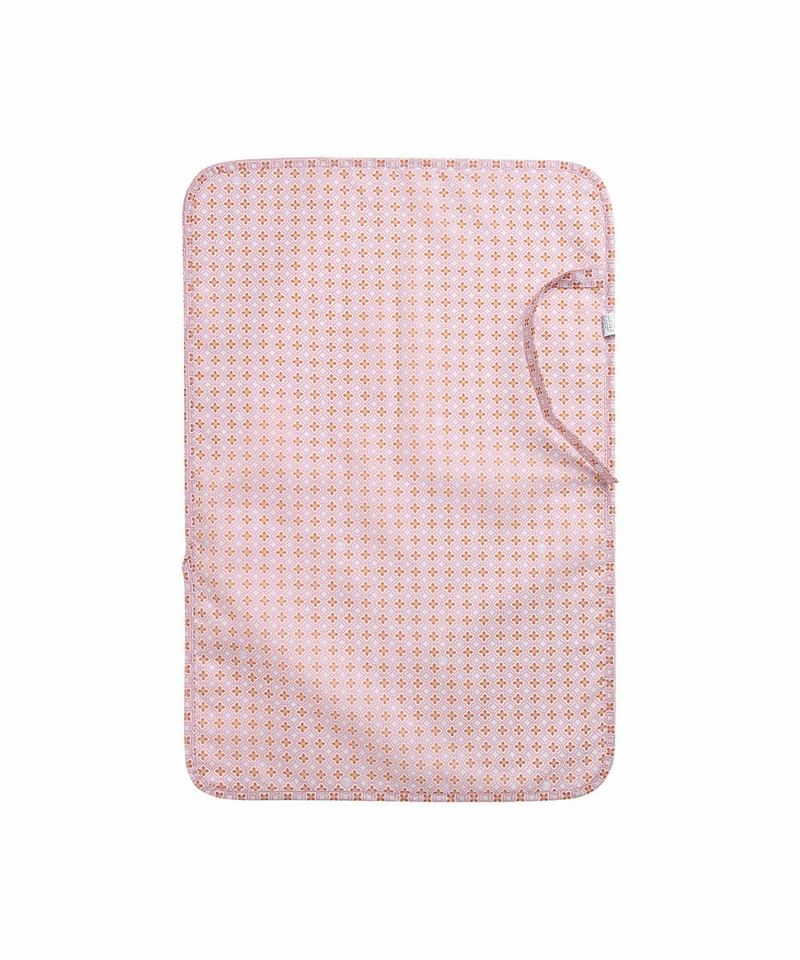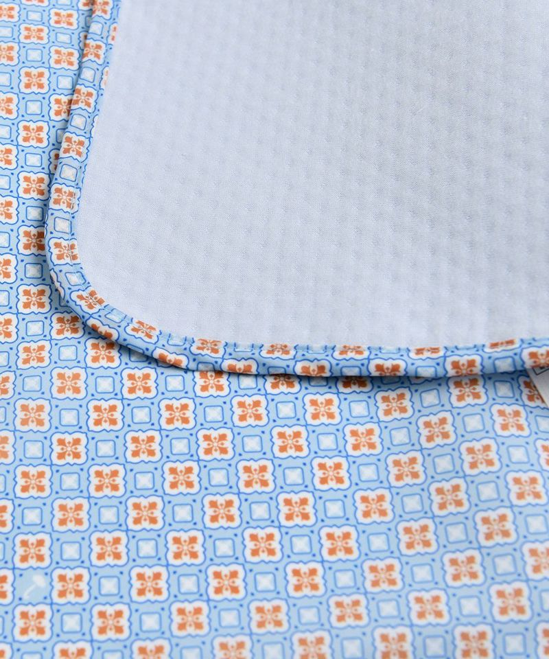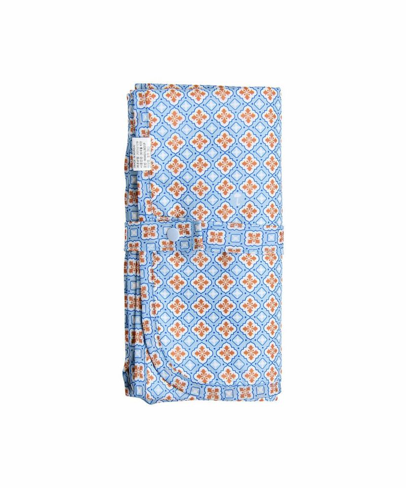 ソフトなソリッドカラーにムードのある柄の面と、パイピング配色のすっきりとした印象の面が特徴の携帯用防水敷布団。柔らかい三重紙の生地の裏面には生活防水処理が施されているため汚れを防ぎ、防水敷布団を畳んでストラップで固定させるとコンパクトなサイズになり、持ち運びに便利なアイテムです。