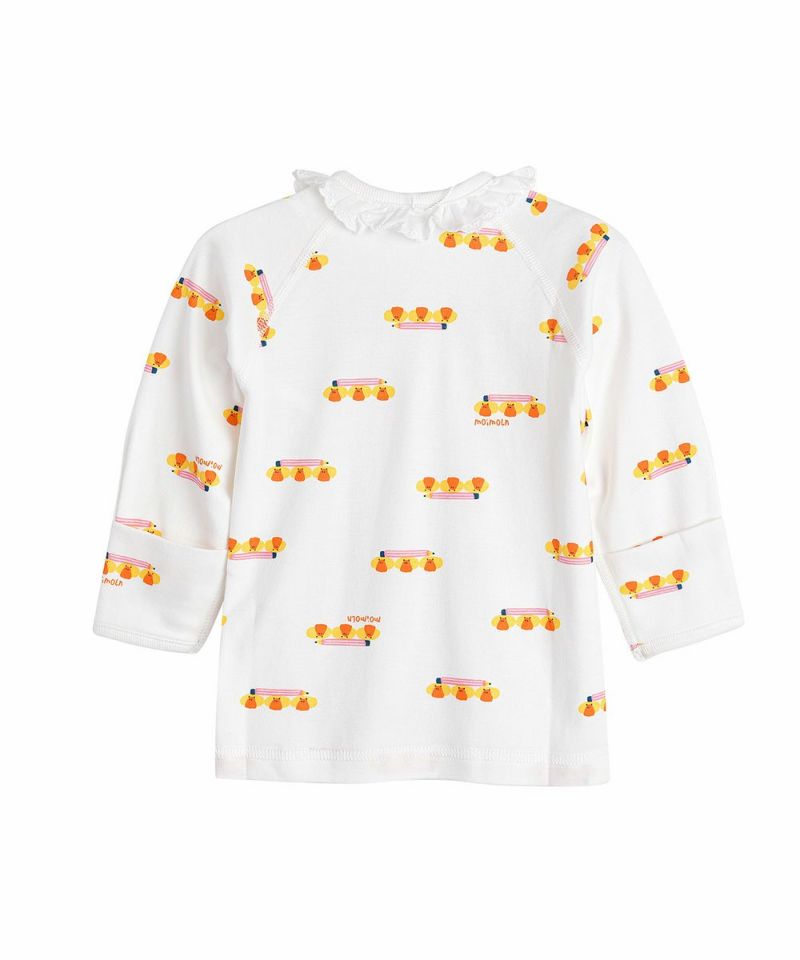 抗菌・消臭効果が優秀な柔らかいバンブー素材で、カモノハシモチーフのプリントにレースフリルがポイントの肌着です。
