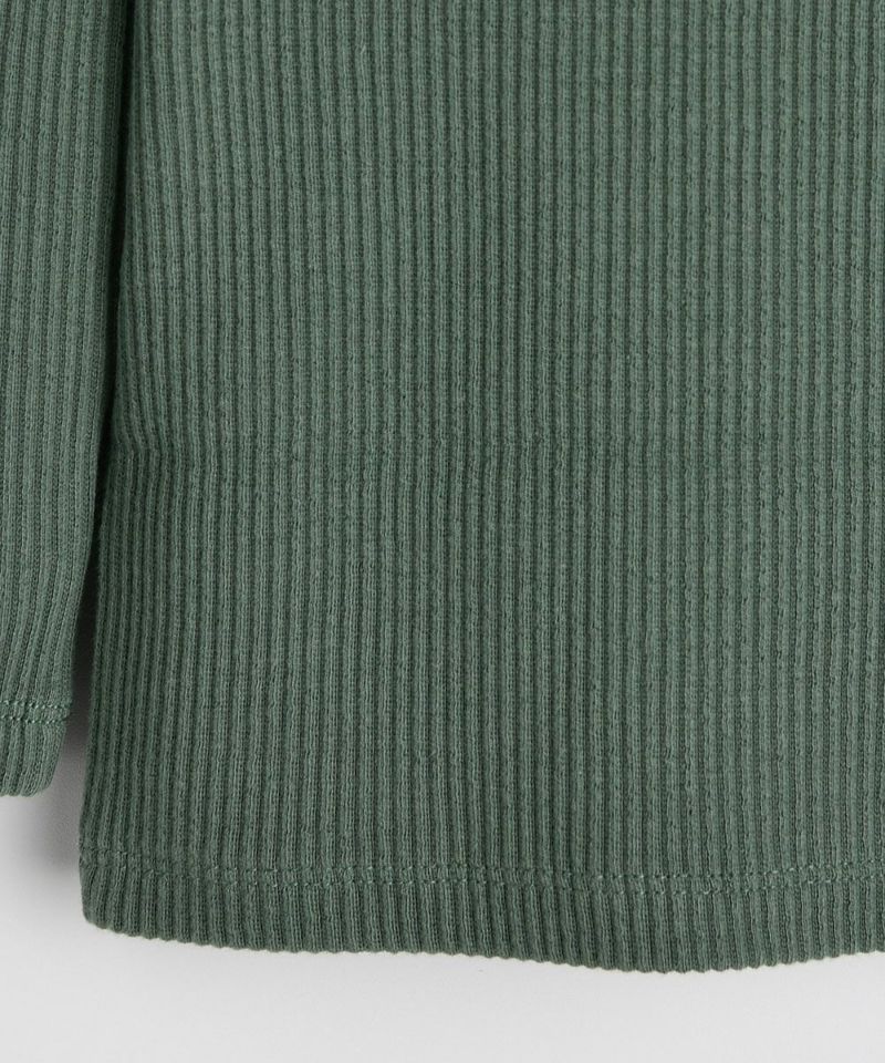 伸縮性に優れたリブTシャツ。中央の差し色と袖のラベルがポイントのアイテム。クリップスリムリブレギンス(M244KPF04P)とのコーディネートがおすすめです。