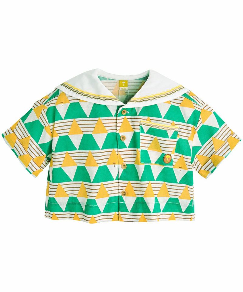 明るい色味のビッグセーラーカラーと短い丈ポイントの6分袖シャツ。(W242OPB63P)M242ROB17Pとシミラールックとしておすすめします。