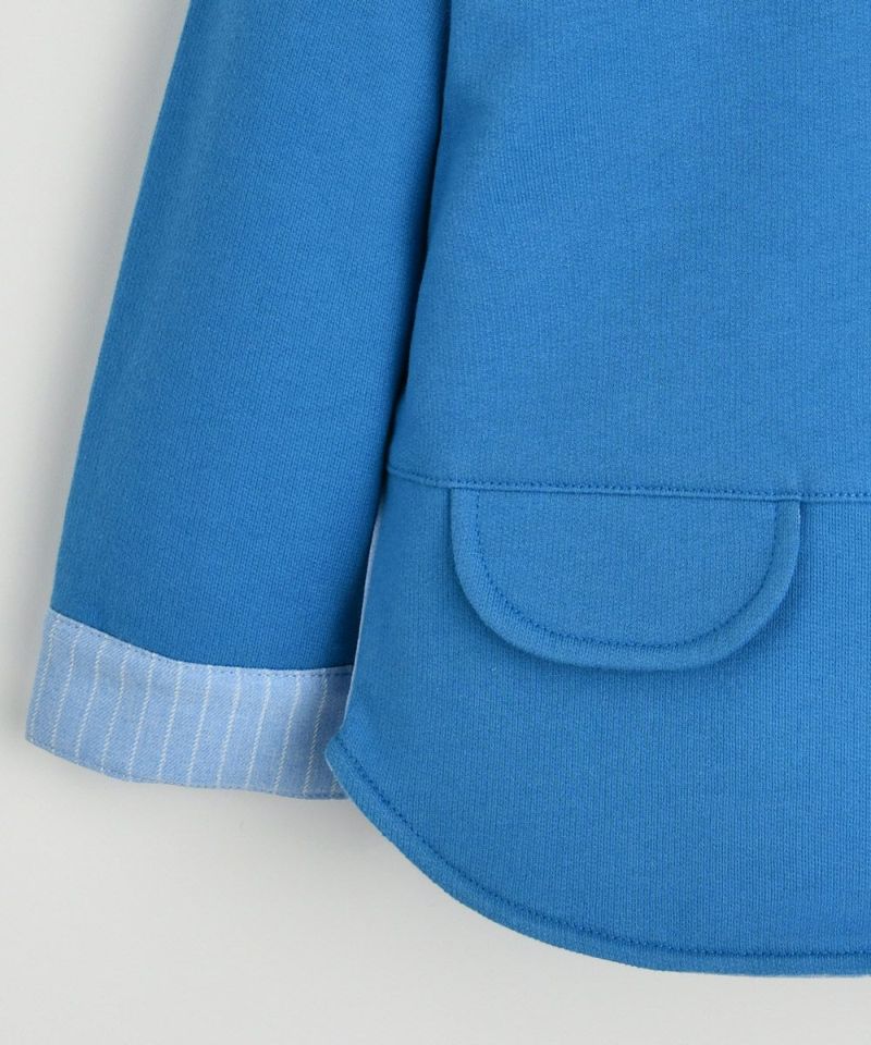 ウーブン素材を袖裾に組み合わせ、シャツをレイヤードした様なデザインのTシャツ。ピーマンの刺繍とフェイクポケットがポイントです。