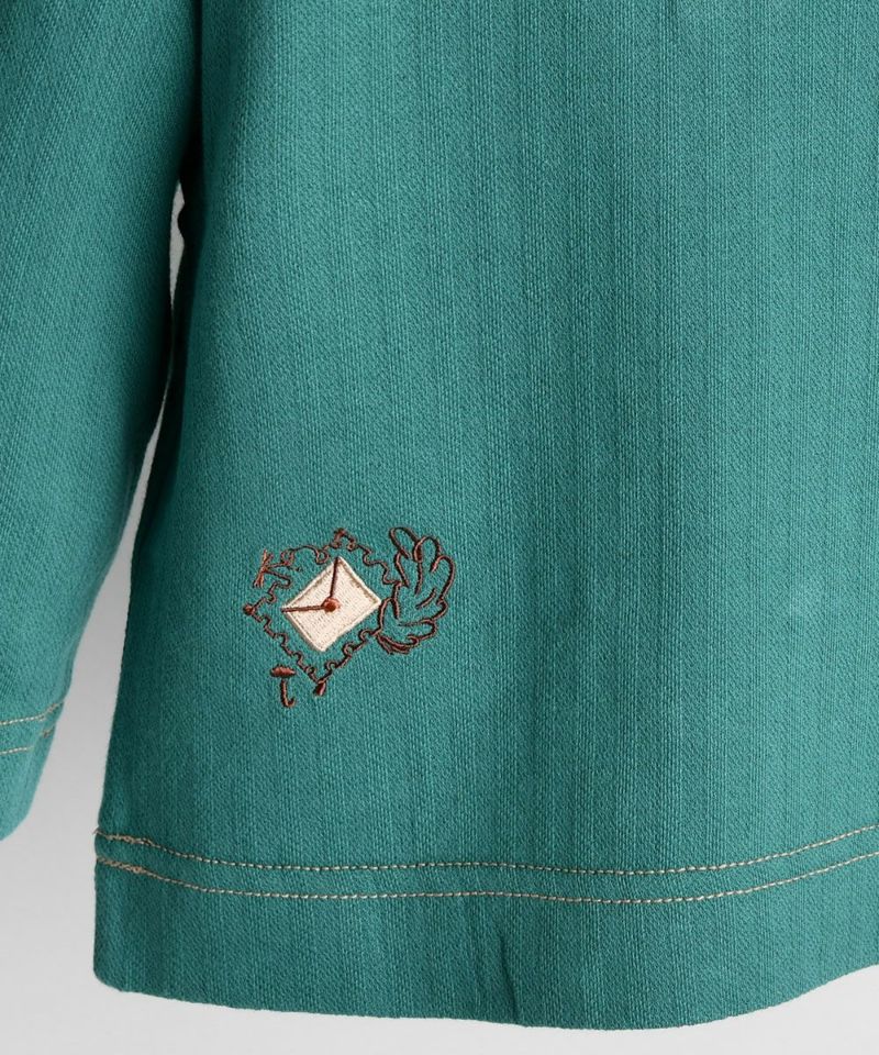 ヘリンボーンスウェットTシャツ。チェックのポケットと、切手のようなマウス刺繍がポイント♪しっかりとした厚みのある素材で季節の変わり目にぴったりなアイテムです。