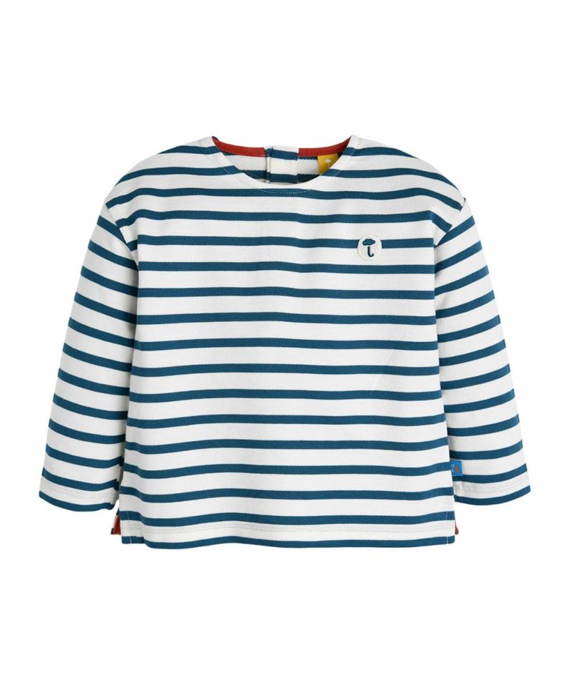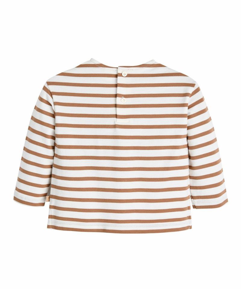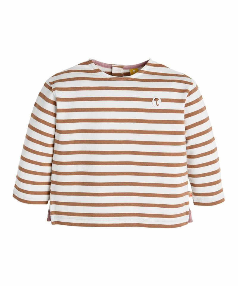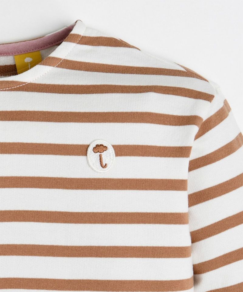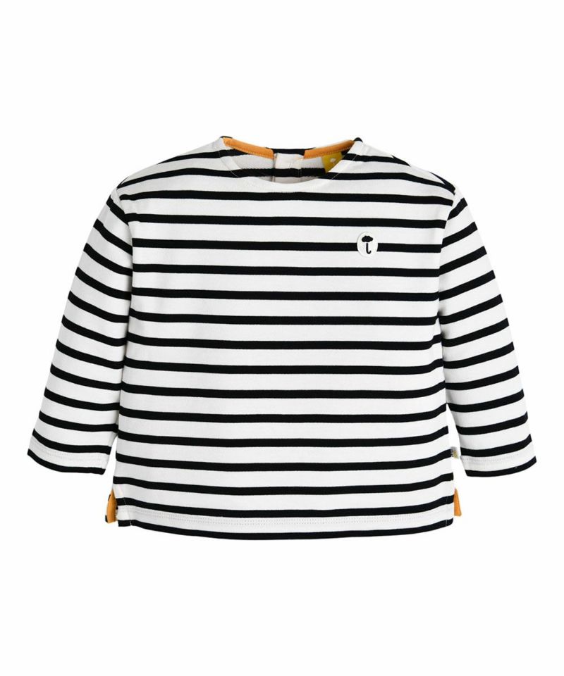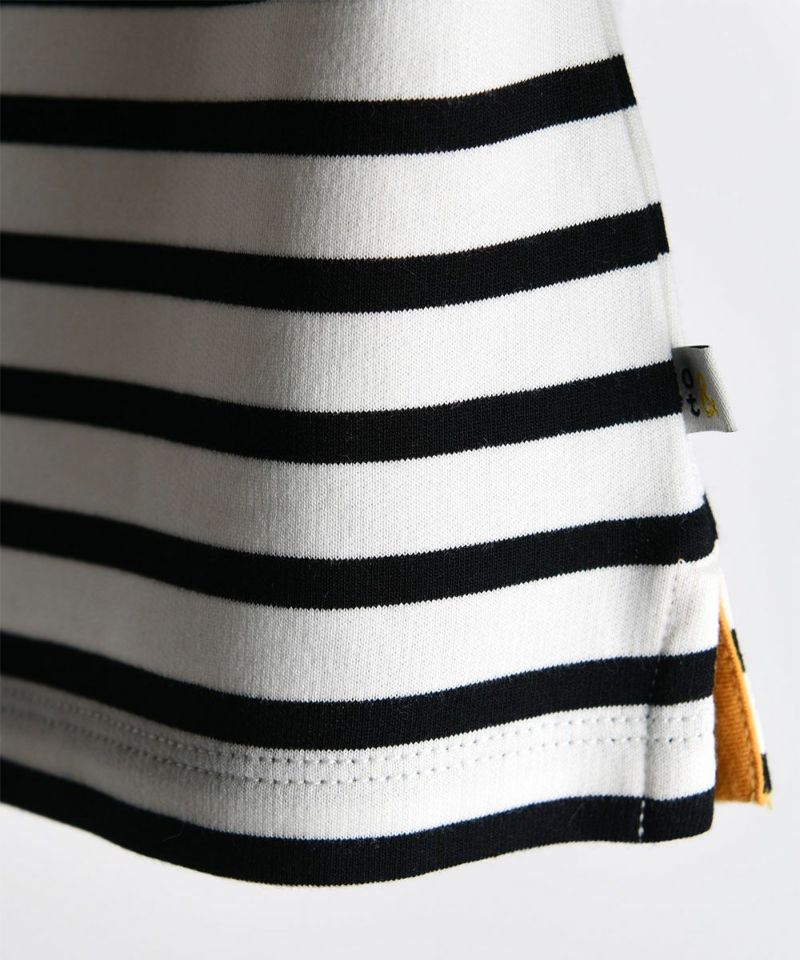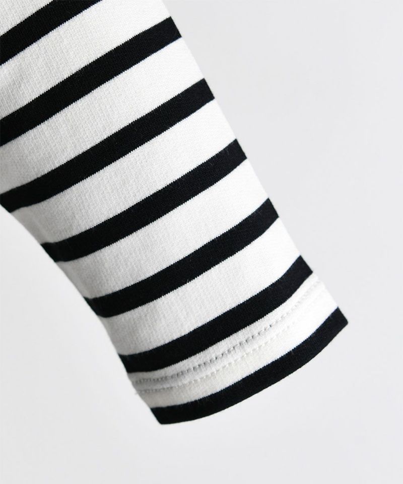 オーバーフィットのボーダーTシャツ。ベーシックながらも胸元のワンポイントがかわいらしいアイテム。SOFT&マイルドウォーマーレギンス(W244KPB71P)とのコーディネートがおすすめです。