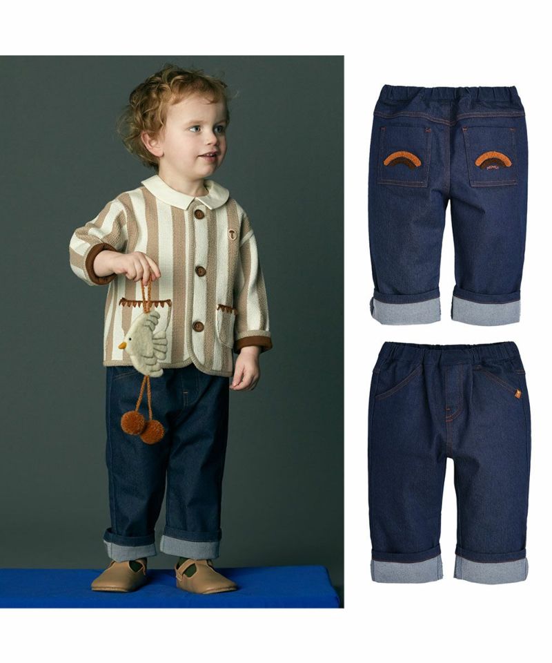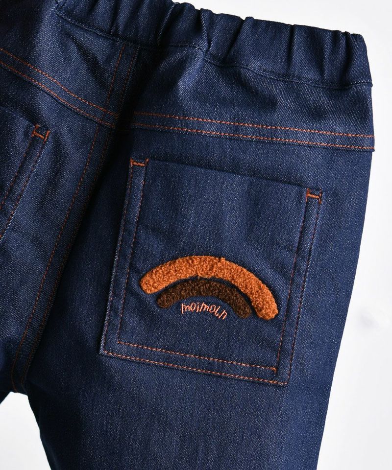 幅広いコーディネートに活躍するデニムライクなパンツ。伸縮性も良く、ロールアップコーデも楽しめます♪ポケットのブークレ刺繍がポイントのアイテムです。