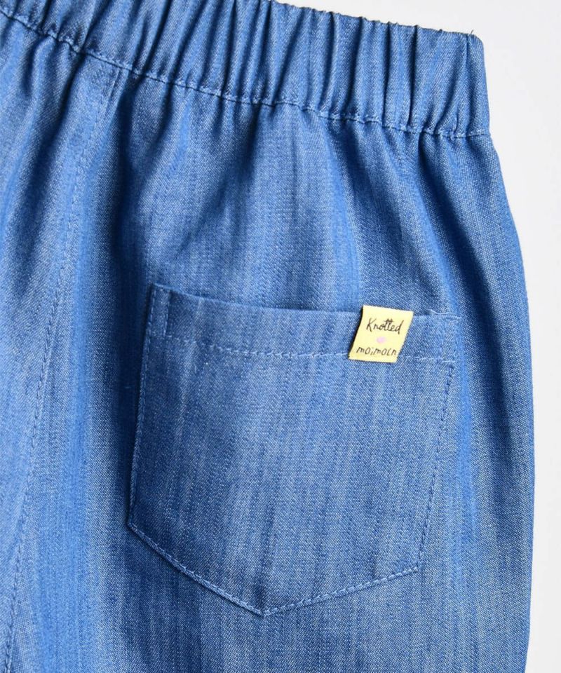 涼しい素材感の4分丈デニムパンツ。軽い着心地とノーティッドのキャラクター刺繍がポイントのアイテムです。