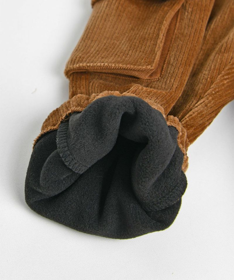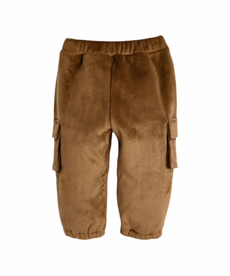 ソフトなベロア生地にに起毛素材が合わさった厚手のカーゴスタイルのジョガーパンツ。両サイドの立体ポケットがボリューム感を与え、ポケットのフラップに施されたオリジナルラベルがポイントのアイテムです。