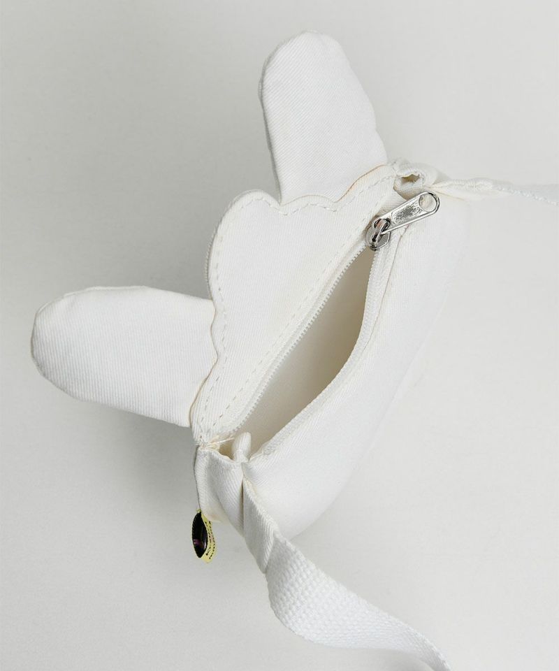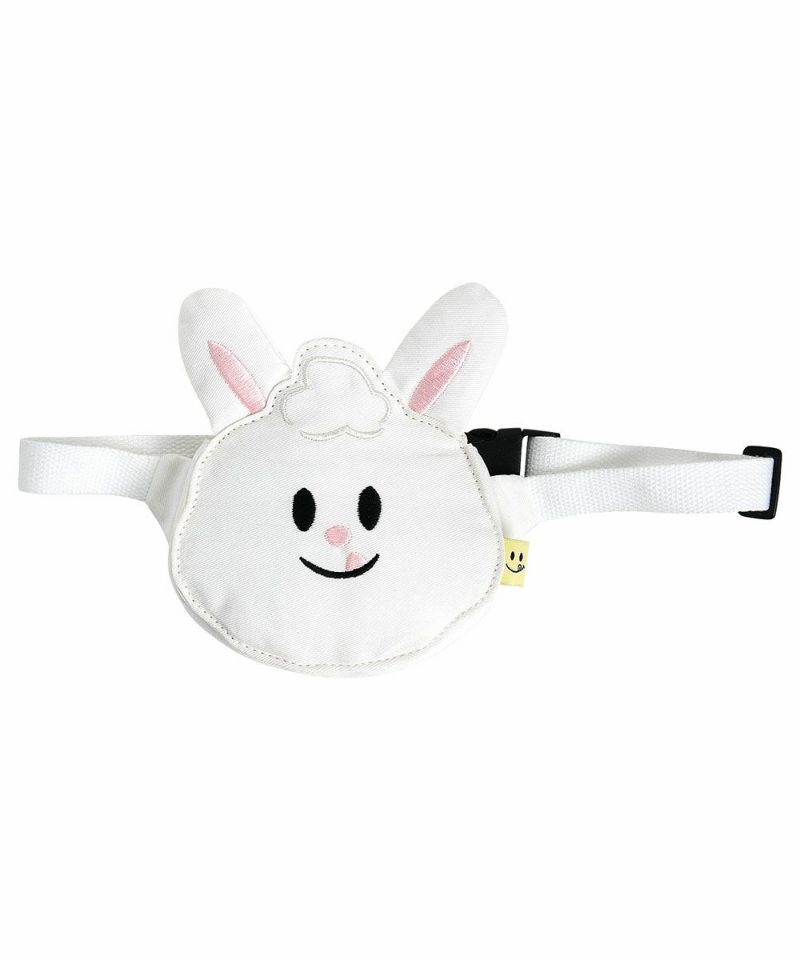 ノーティッドのクリームバニーの顔の形をしたウエストバッグ。立体的な耳と顔の刺繍がポイントのアイテムです。