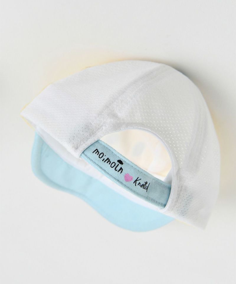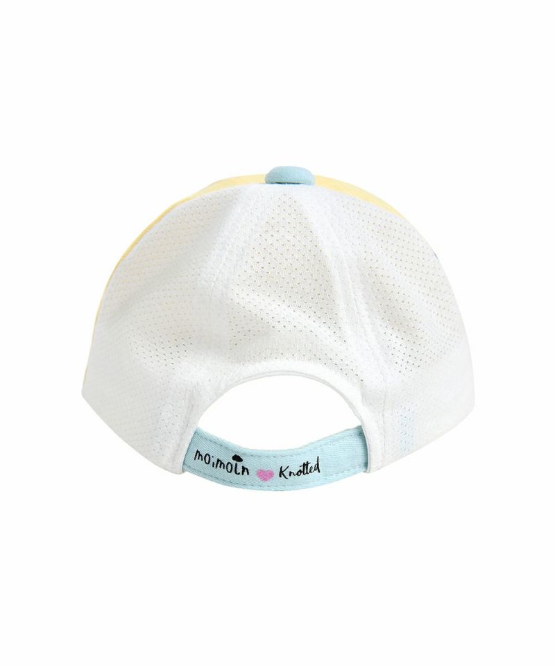 中央のスマイルの顔が特徴的なキャップ帽。くるみボタンとつばのブルーカラー配色でポイントを与えたアイテム。(W242BUN88P)とのコーディネートがおすすめです。