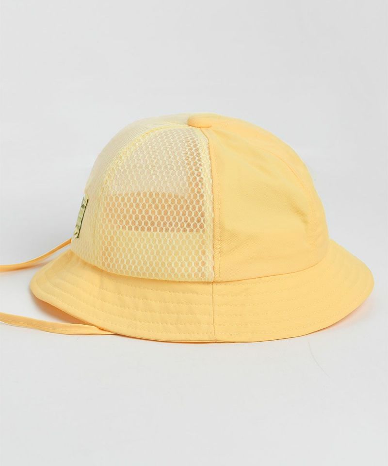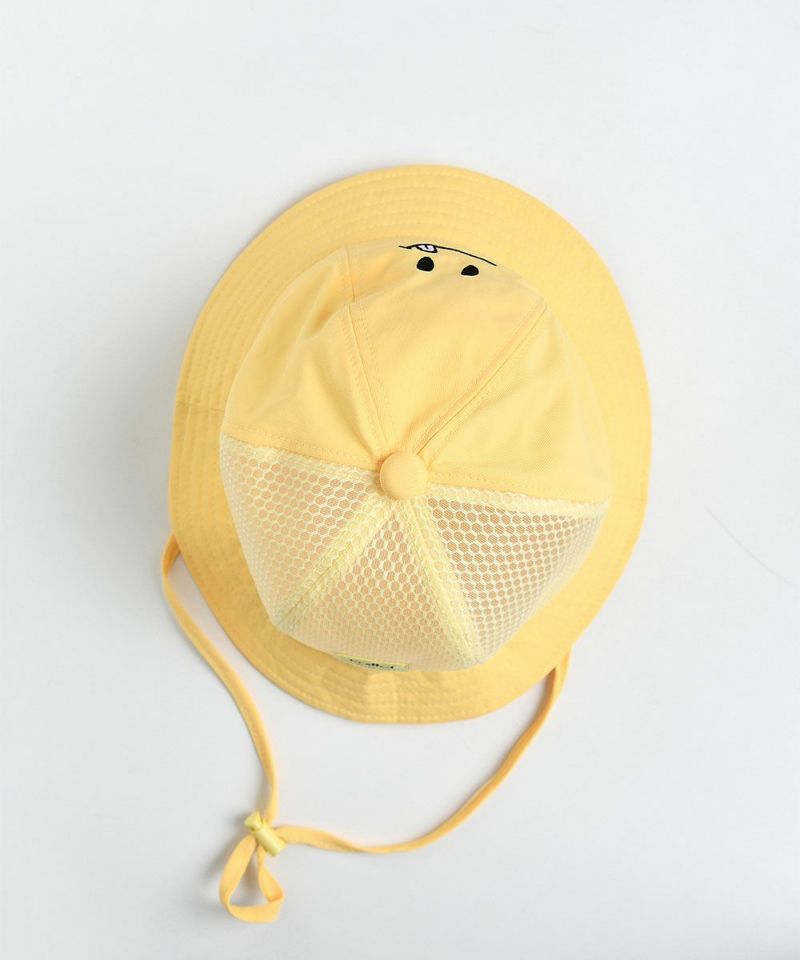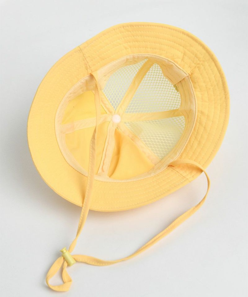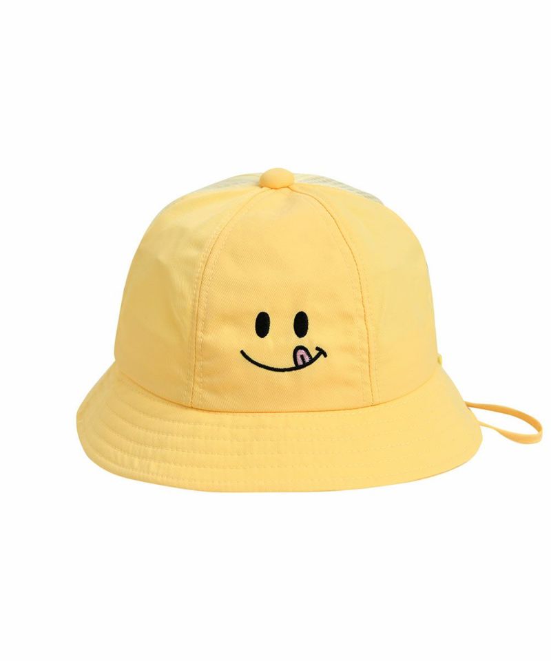 前面のノーテッドスマイル刺繍がポイントのバケットハット。裏面はメッシュ素材になっており、通気性がよくさわやかなイエローカラーで夏のスタイリングのポイントとなるアイテムです。