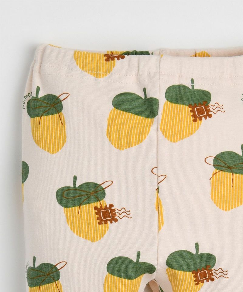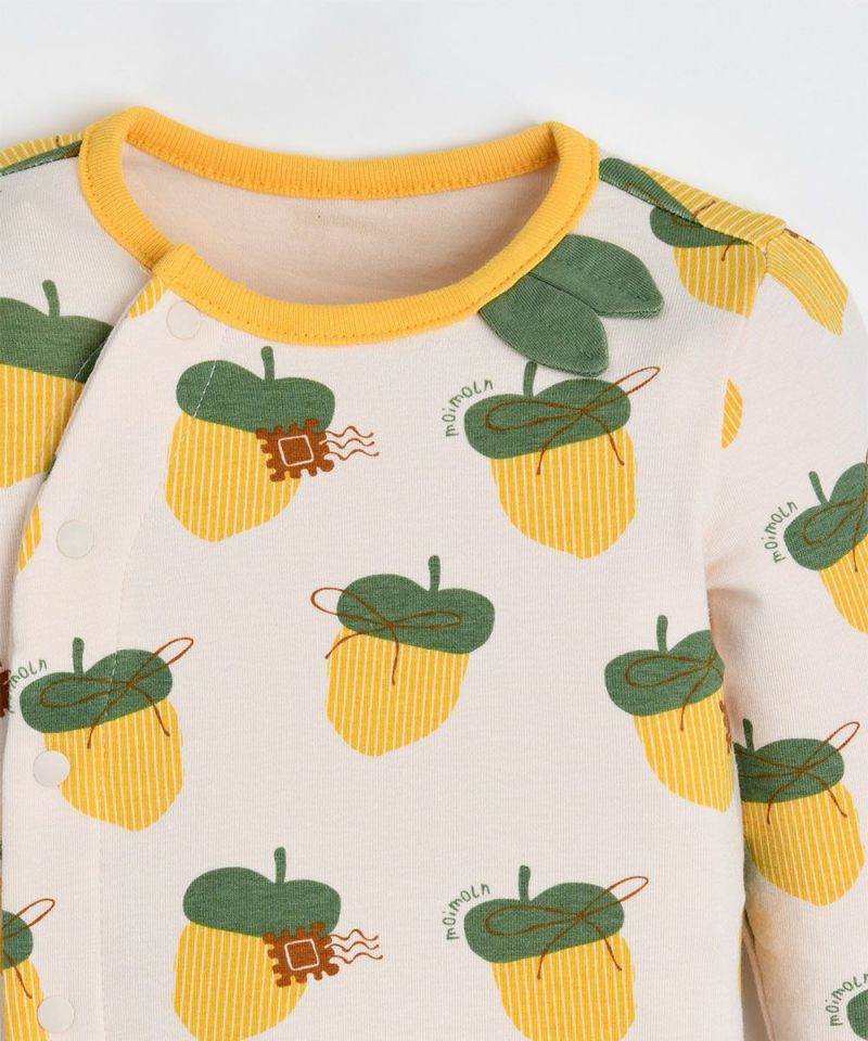 可愛いどんぐりモチーフのルームウェア。足首のリブ部分の配色がポイント♪【バンブーコットン】トリーロンパース(M243BUN09P)と兄弟ルックがおすすめです。
