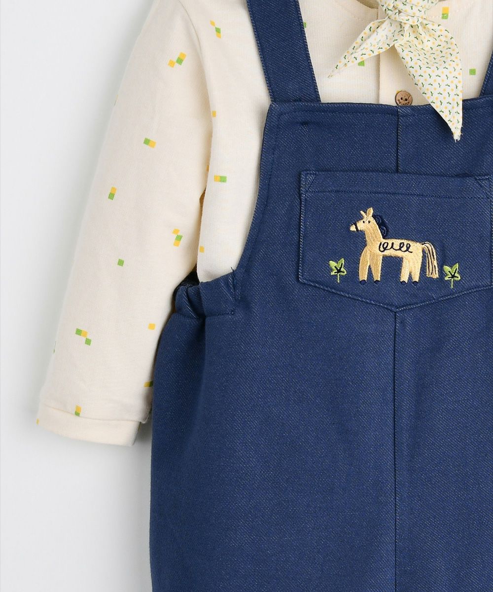 【3点セット】ドットスカーフ&トップス&ポニーオーバーオール
