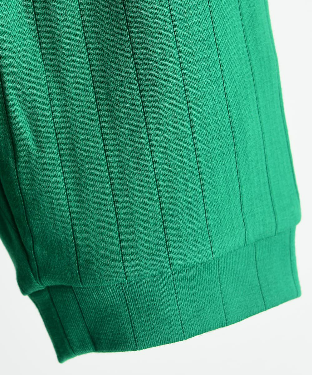 【セットアップ】グリーンピンタックカラーノースリブトップス&パンツ