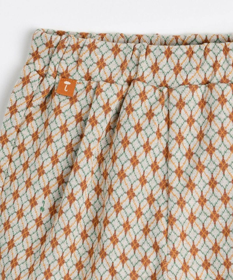 幾何学模様のジャカードブルマセットアップ。キャメル色の大きな襟とロゴワッペンがポイントのアイテム。グレインセットアップ(W243STB41P)との兄妹ルックもおすすめです。