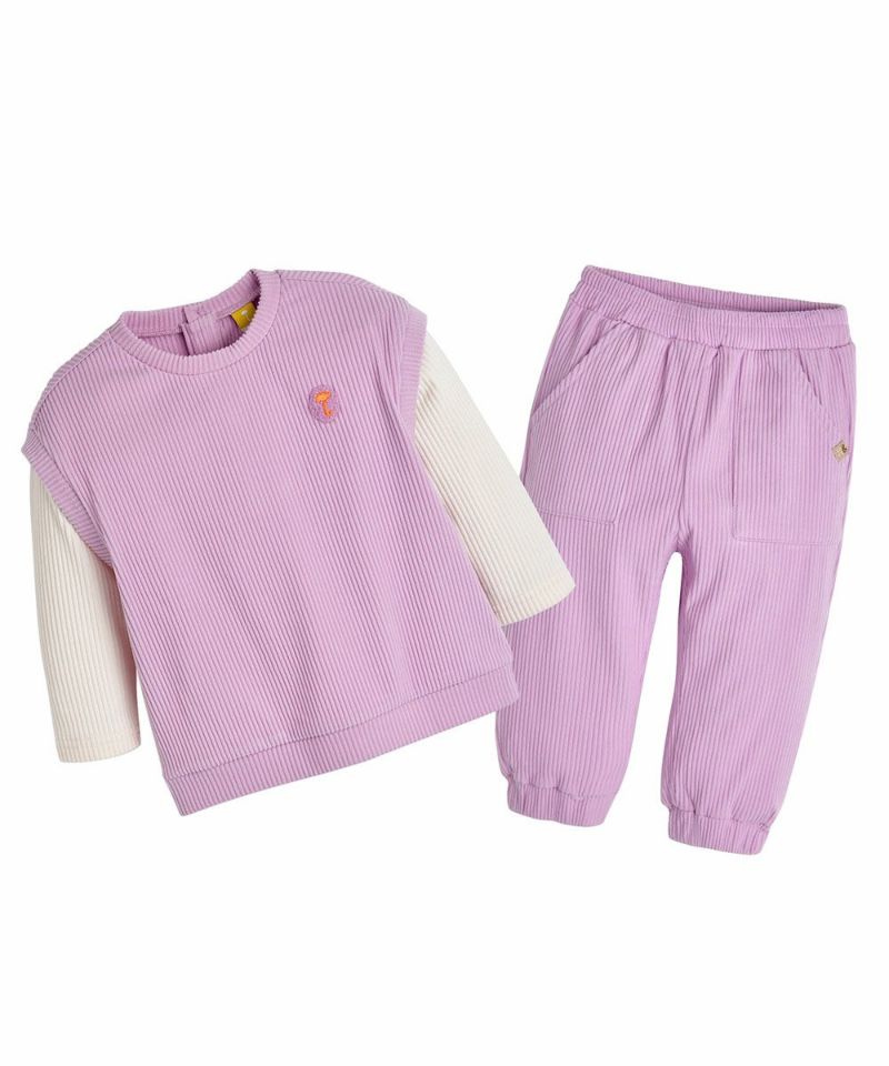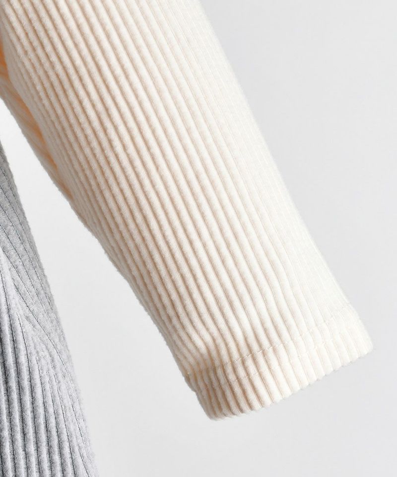 肌触りが良く、伸縮性の良いポリフライス リブスパン素材のセットアップ。ベストレイヤード形で可愛いらしさもあり、デイリーコーデがしやすいアイテムです。
