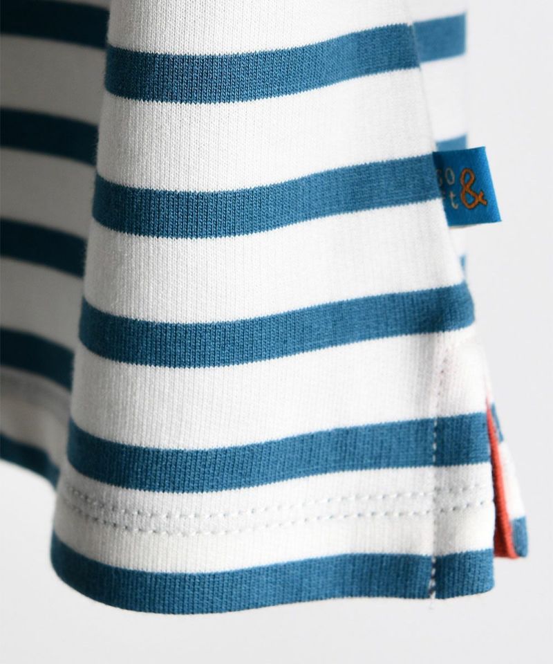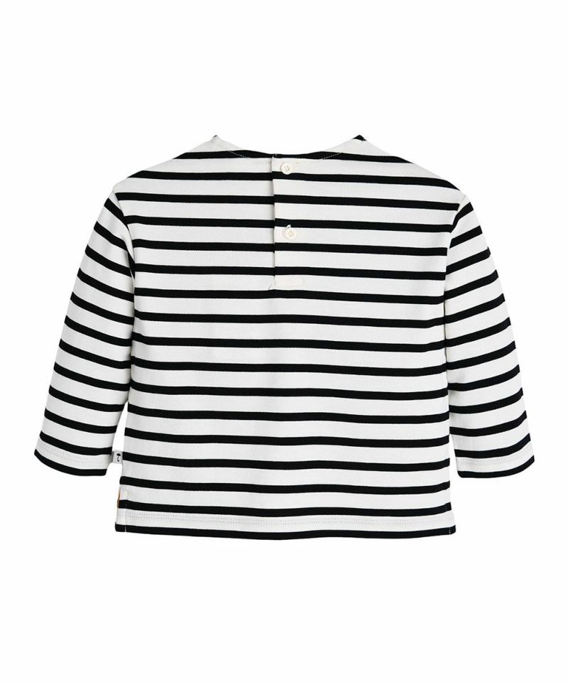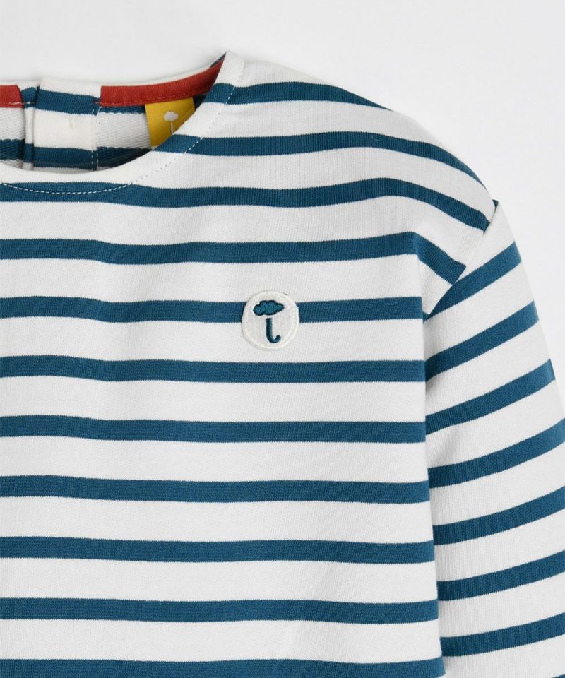 オーバーフィットのボーダーTシャツ。ベーシックながらも胸元のワンポイントがかわいらしいアイテム。SOFT&マイルドウォーマーレギンス(W244KPB71P)とのコーディネートがおすすめです。