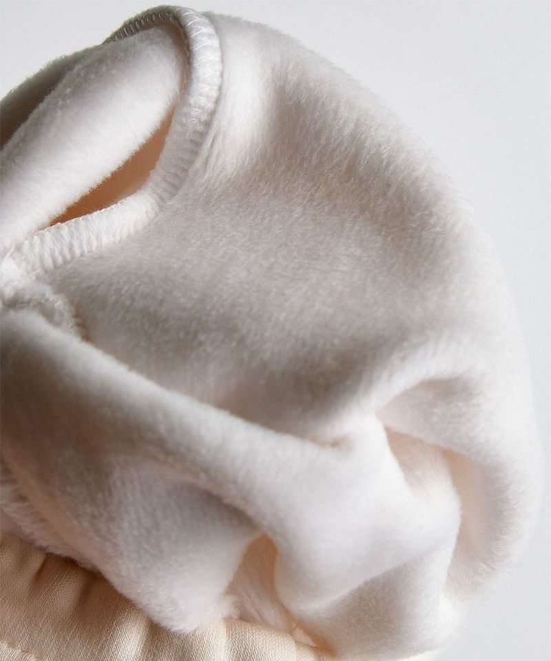 裾を伸縮性の良いニット素材で配色し、見た目も暖かそうなミンク起毛レギンス。様々なトップスとマルチコーデがしやすく、配色ロゴポイントスウェット(W234TSF20P)とのコーデが特におすすめです。