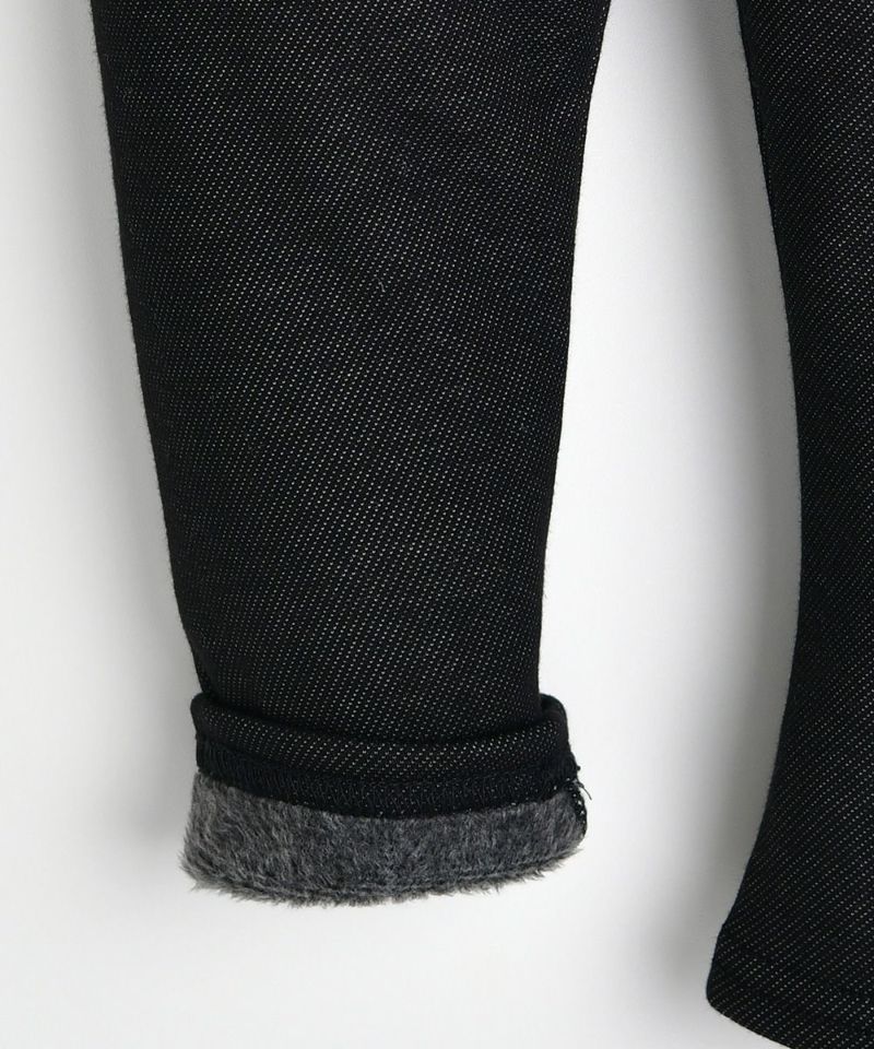 デニムパンツ風の素材とミンク起毛裏地で、暖かく伸縮性の良いレギンス。ベーシックなデニムでマルチコーデに最適なアイテムです。