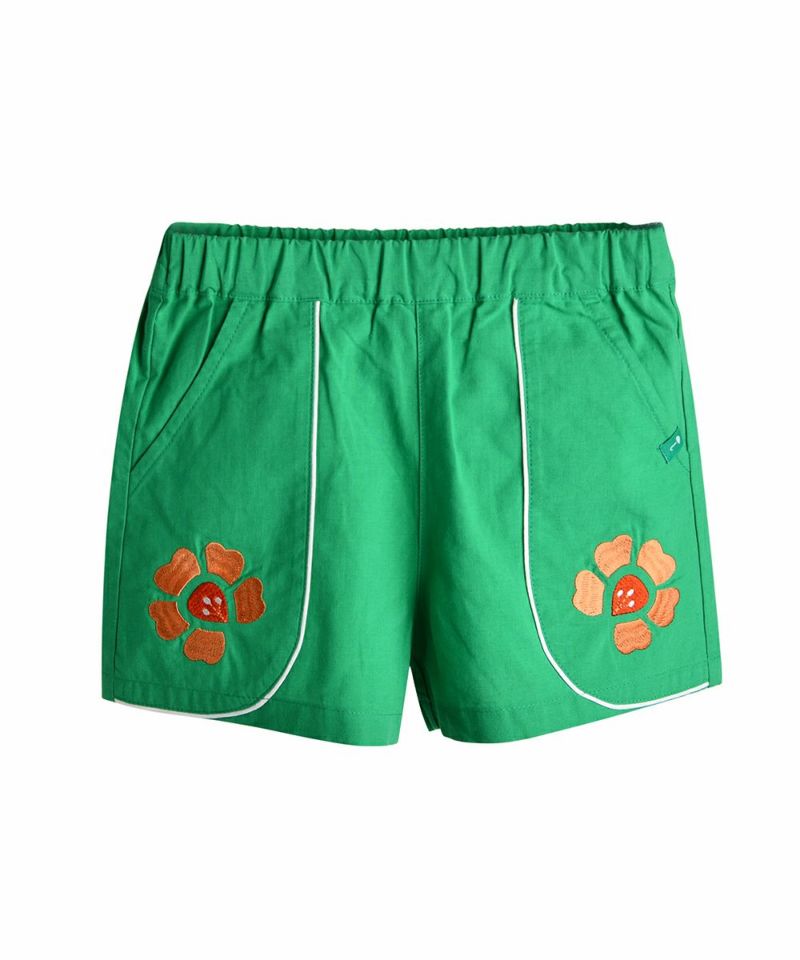 やわらかくて涼しいCR素材の4分丈ウーブンパンツ。バイカラーのパイピングと切り替えラインがユニークでパンツのフラワー刺繍がポイントのアイテムです。*カタログ掲載商品