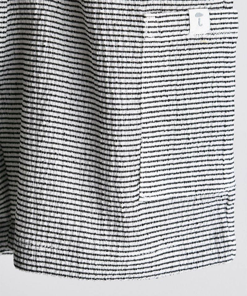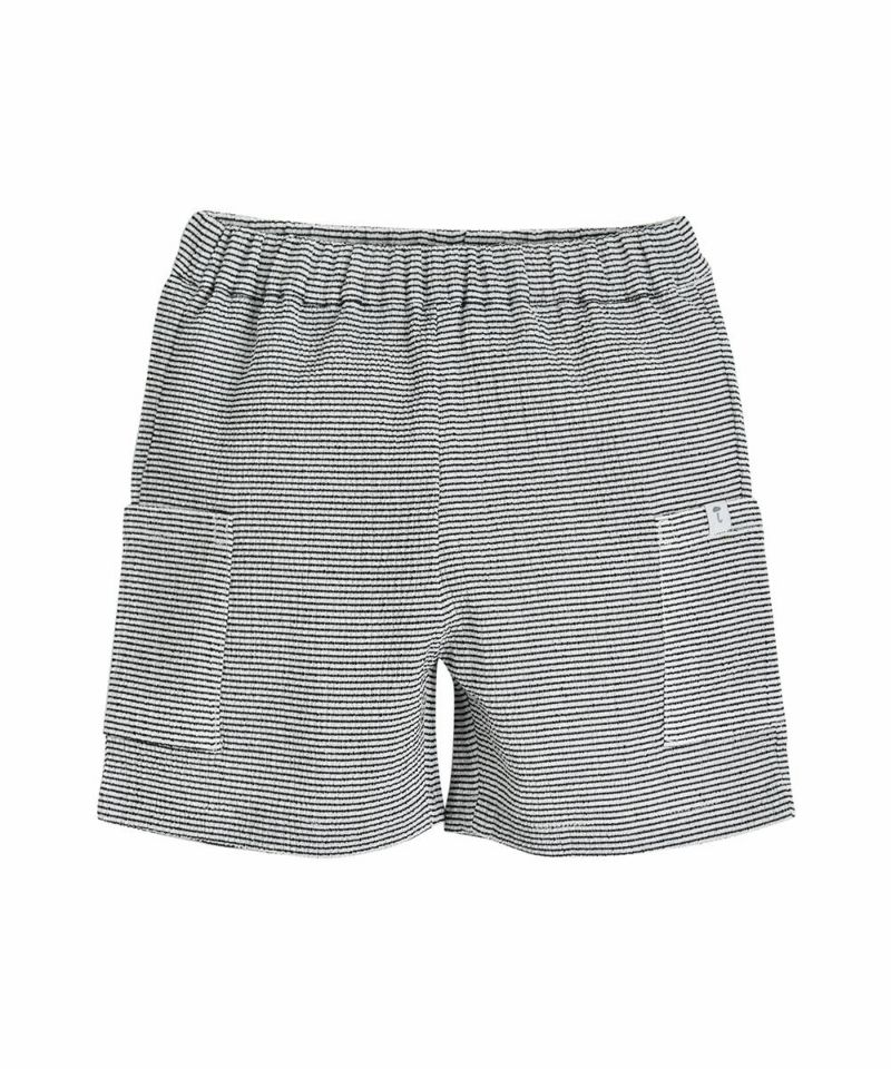 大きなポケットが特徴の先染めの6分丈パンツ。パンツの裾が広くデザインされており、夏シーズンにも活用度が高く、リラックスしたフィット感なのでデイリールックで活躍するアイテムです。