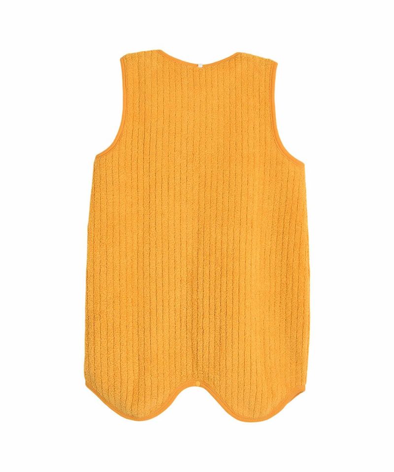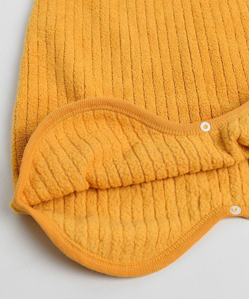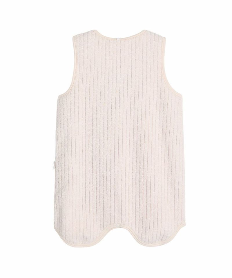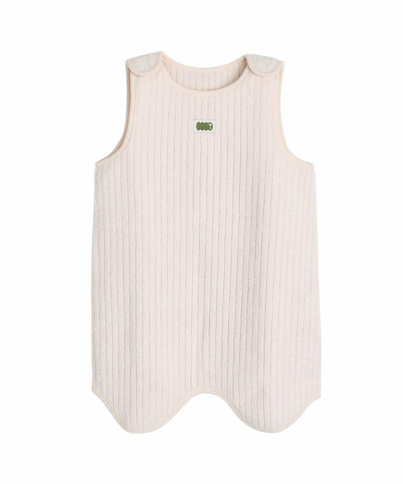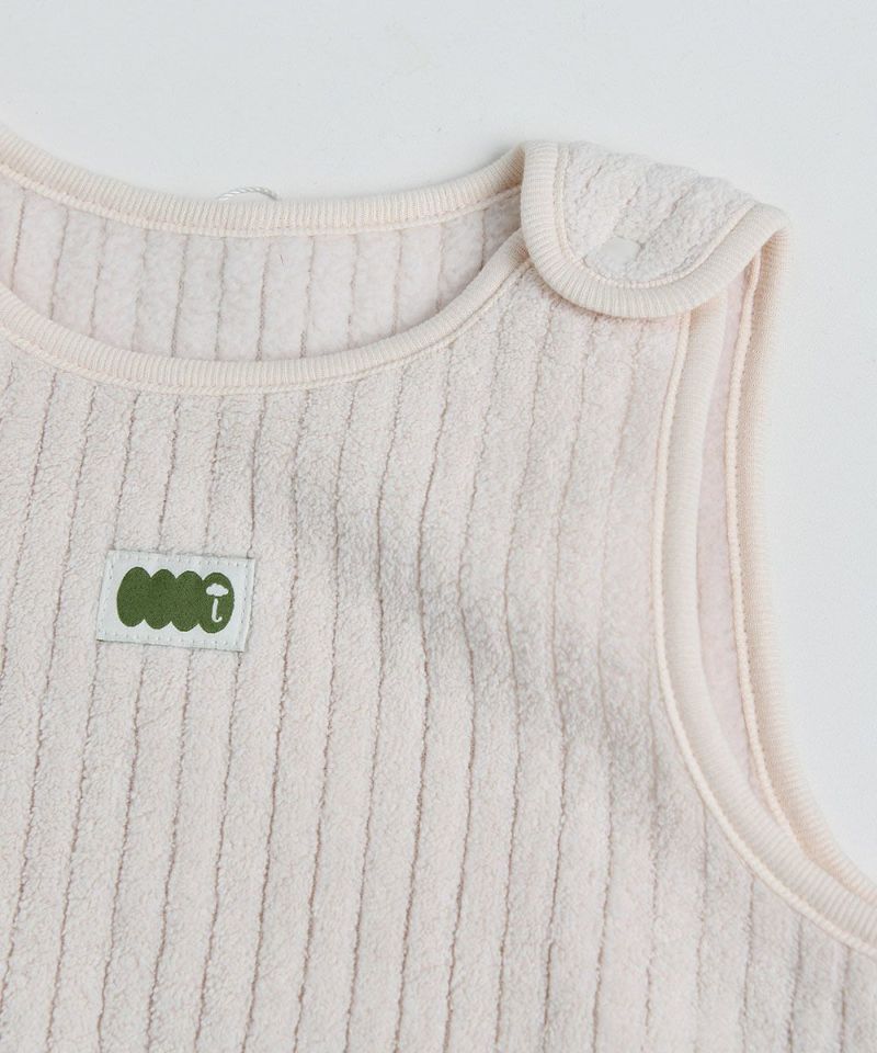 柔らかいベルボア素材を両面に使用したスリーパー。保温性が高く、フロントラベルがポイントのアイテムです。