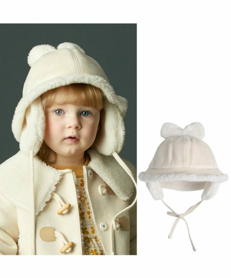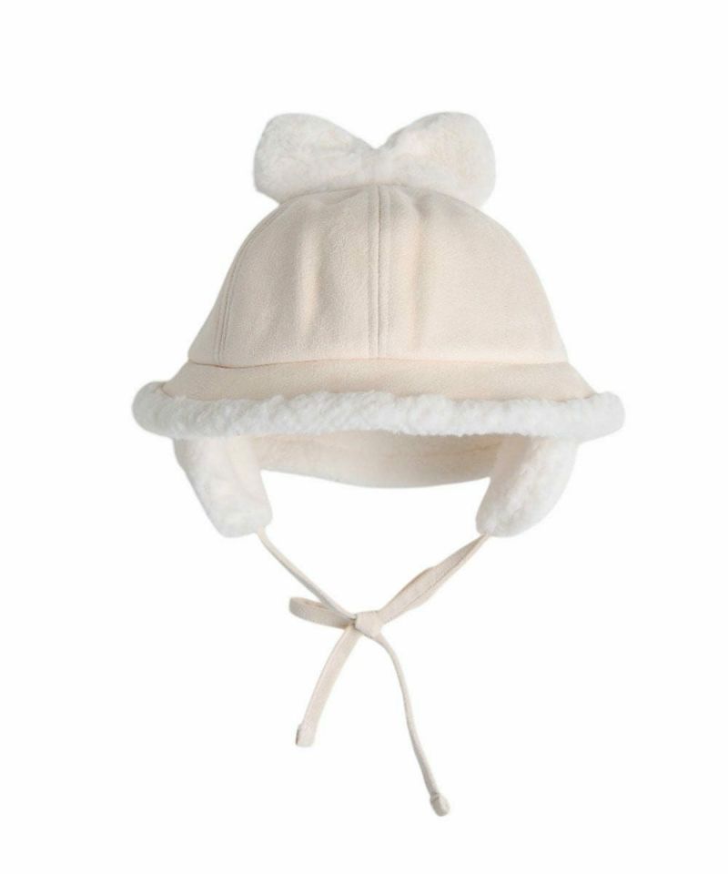 ソフトなカラーの暖かいムートン帽子。リボン状のファーの飾りがポイントのアイテム。ベイリームートンコート(W244COB34P)やラディンムートンベス(W244VEB35P)とのコーディネートがおすすめです。