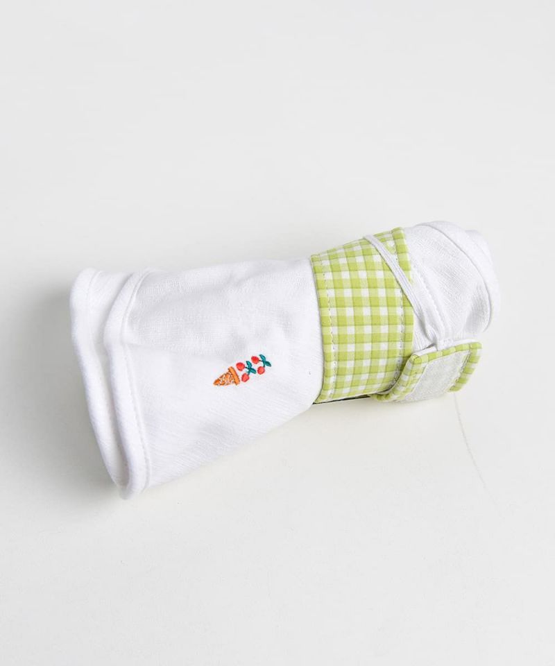 刺繍がポイントの広つばハット。日除け対策にピッタリのシルエット。飾りのチェック柄ウーブン素材リボンは、デザインとともにサイズ調節としても活躍します。本体をクルクル巻くことで、持ち運びにも便利なアイテムに仕上げました♪