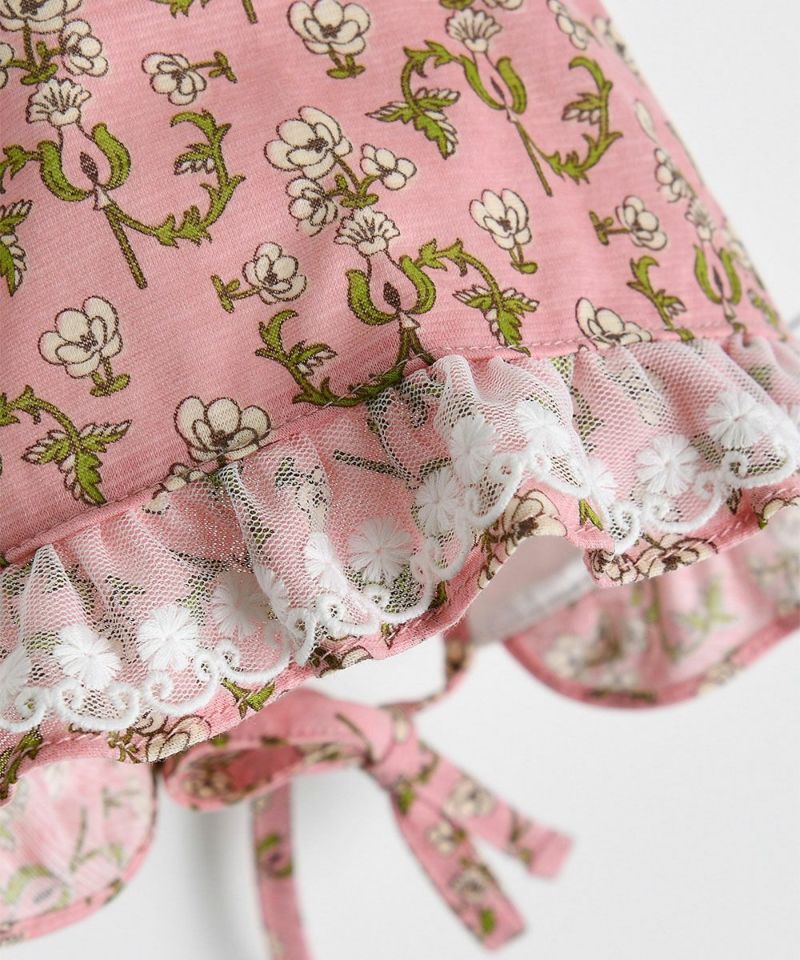 ユニークなフラワー柄と縁に女性らしいフリルが施されたボンネット。(W242BUN23P)とコーディネートがおすすめです。