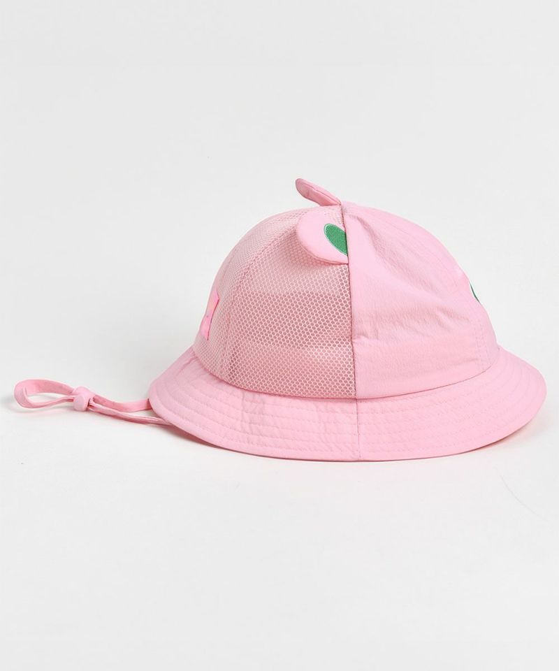 前面のシュガーベア顔の刺繍と飾り耳がポイントのバケットハット。裏面はメッシュ素材になっており、通気性がよくさわやかなピンクカラーで夏のスタイリングのポイントとなるアイテムです。