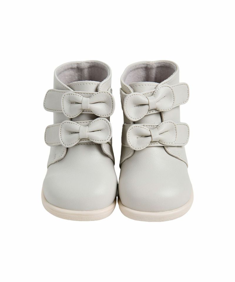 丸いリボンがポイントのメロディシューズ。シンプルなグレーなのでスカートやセットアップなど様々なコーディネートに合わせやすいアイテムです。