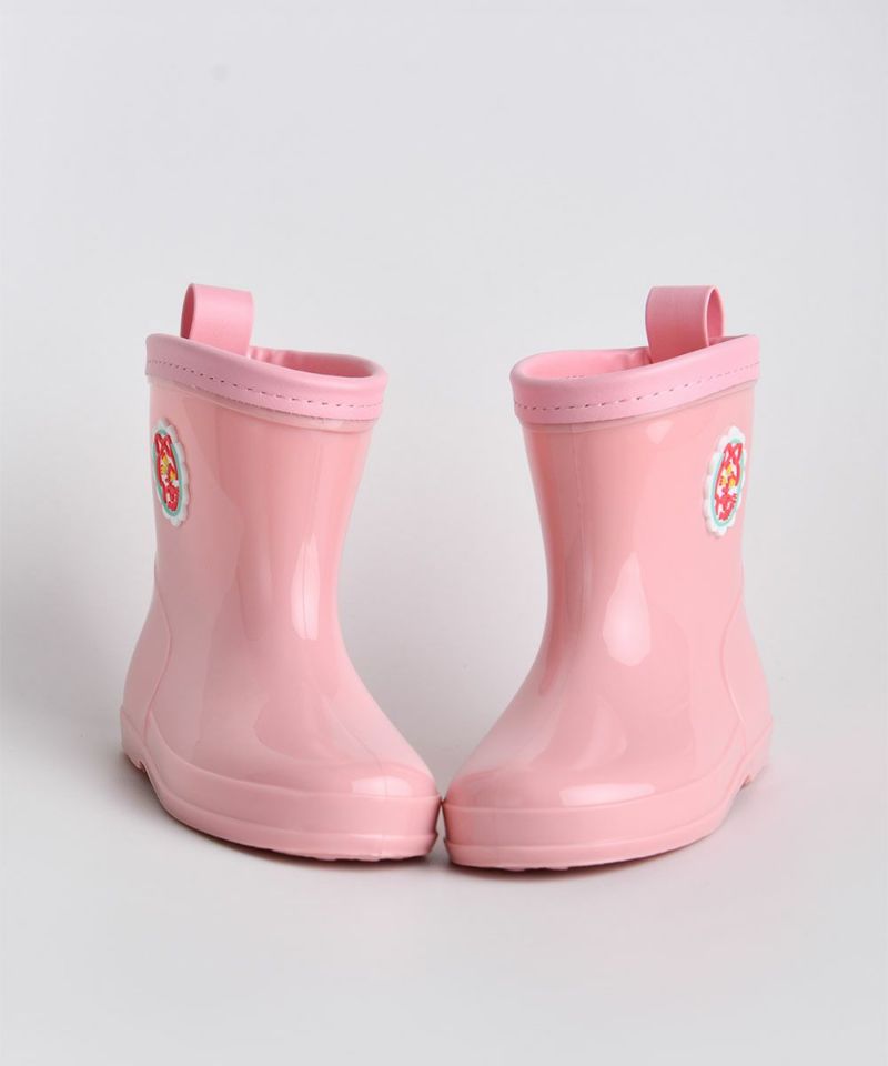 リボンフラワーレインコートの柄と関連する可愛いワッペンがアクセントのレインブーツ。リボンフラワーレインコート(W248RCI08P)とのコーディネートがおすすめです。