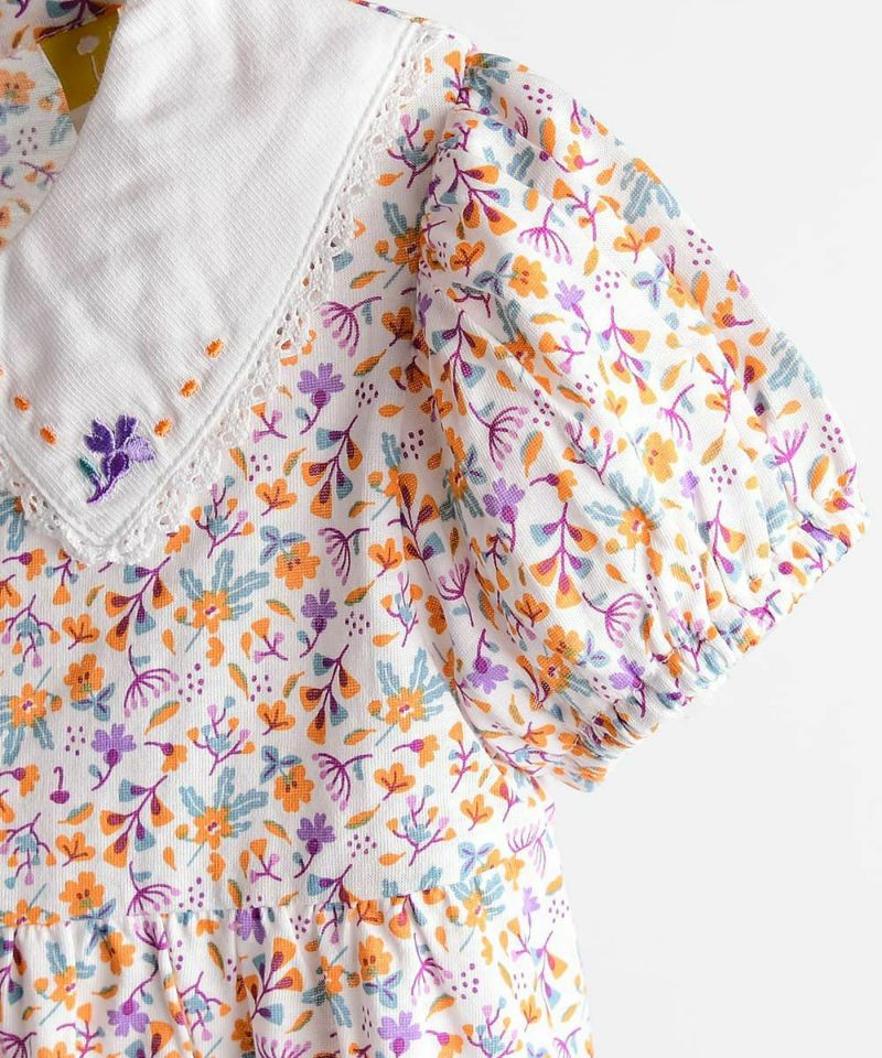 フラワー柄プリントワンピース。ホワイトの襟がキレイめで人気のデザインです♪