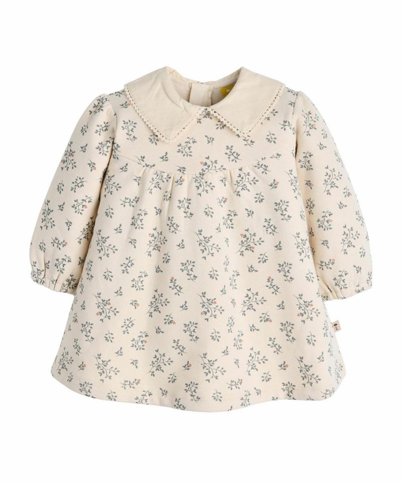 穏やかでムードのあるお花の総柄のワンピース&ベストセット。暖かくて伸縮性に優れた起毛素材のワンピースのため動きやすく、可愛らしいベストで、保温性まで加えたアイテムです。