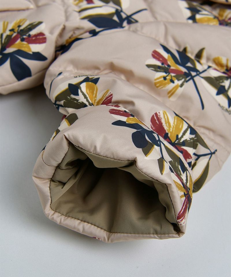 ユニークな花柄に、ダブルステッチが特徴の軽量ダウン。季節の変わり目でも使いやすく、フラワー柄中綿カバーオール(W234ROB49P)との兄弟ルックがおすすめです。