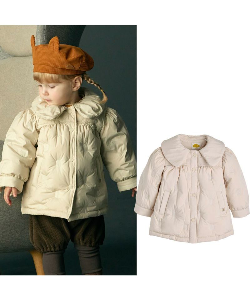 ウサギモチーフのキルティングがユニークな軽量ロングジャンパー。襟とパフ袖で女の子らしさを追求したデザインで、様々なワンピース、セットアップとマルチコーディネートが楽しめるアイテムです。