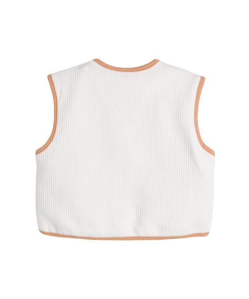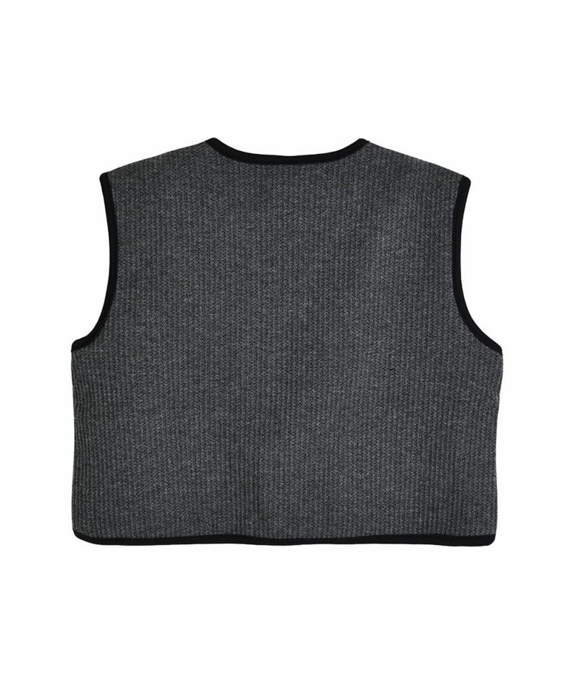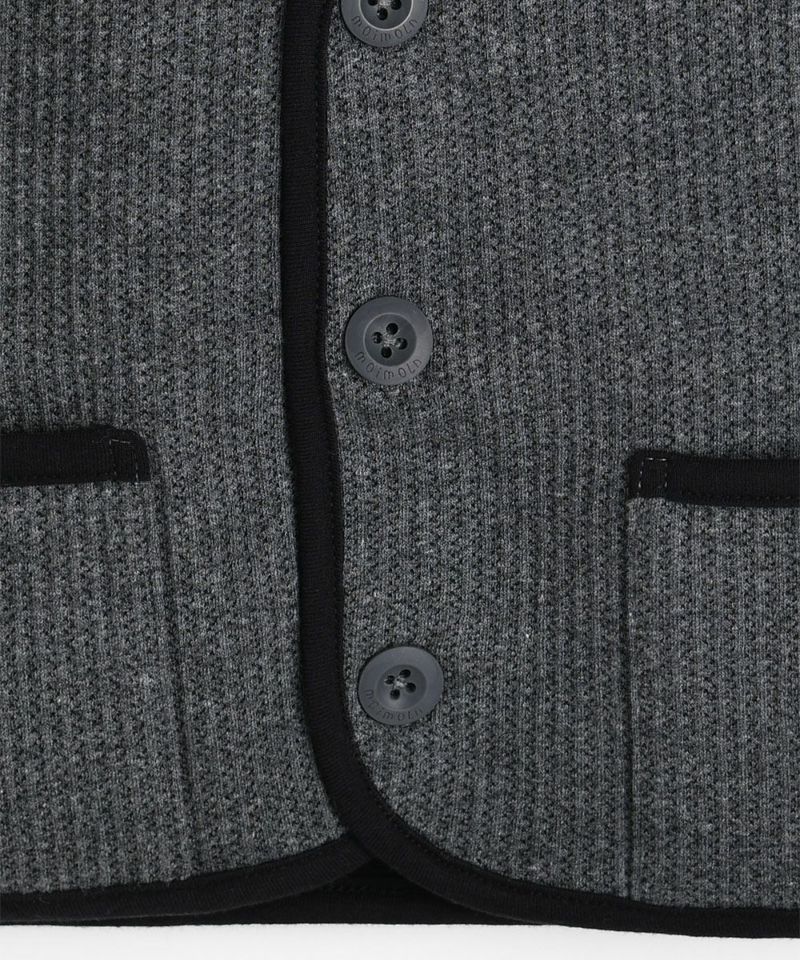 ジャカード入りベスト。裏地とラインカラーの配色がポイント。季節の変わり目から初冬まで幅広いシーンに着用いただけます。