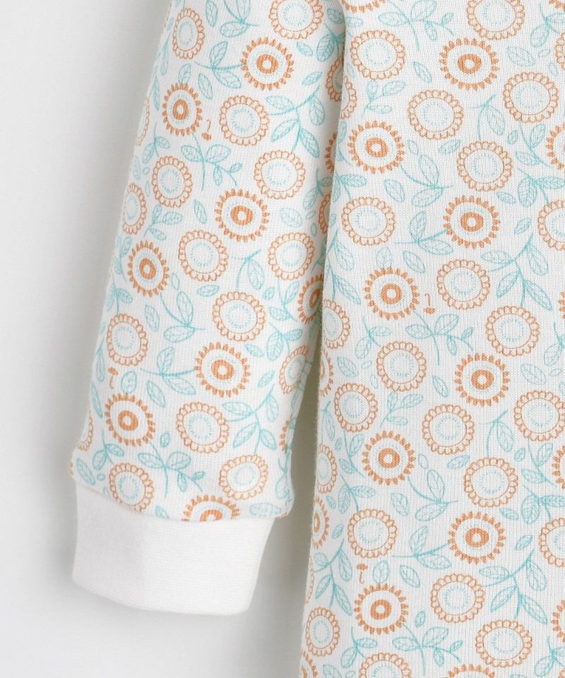 パステルの総花柄に肩のフリルで女の子らしいポイントを加えたルームウェアです。