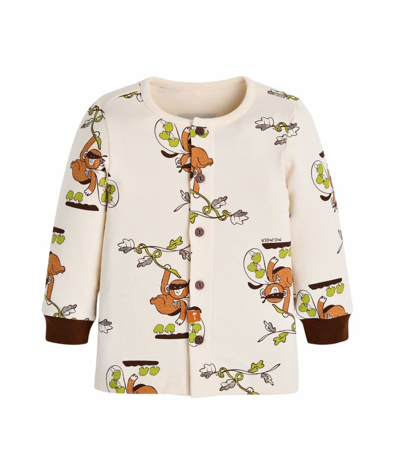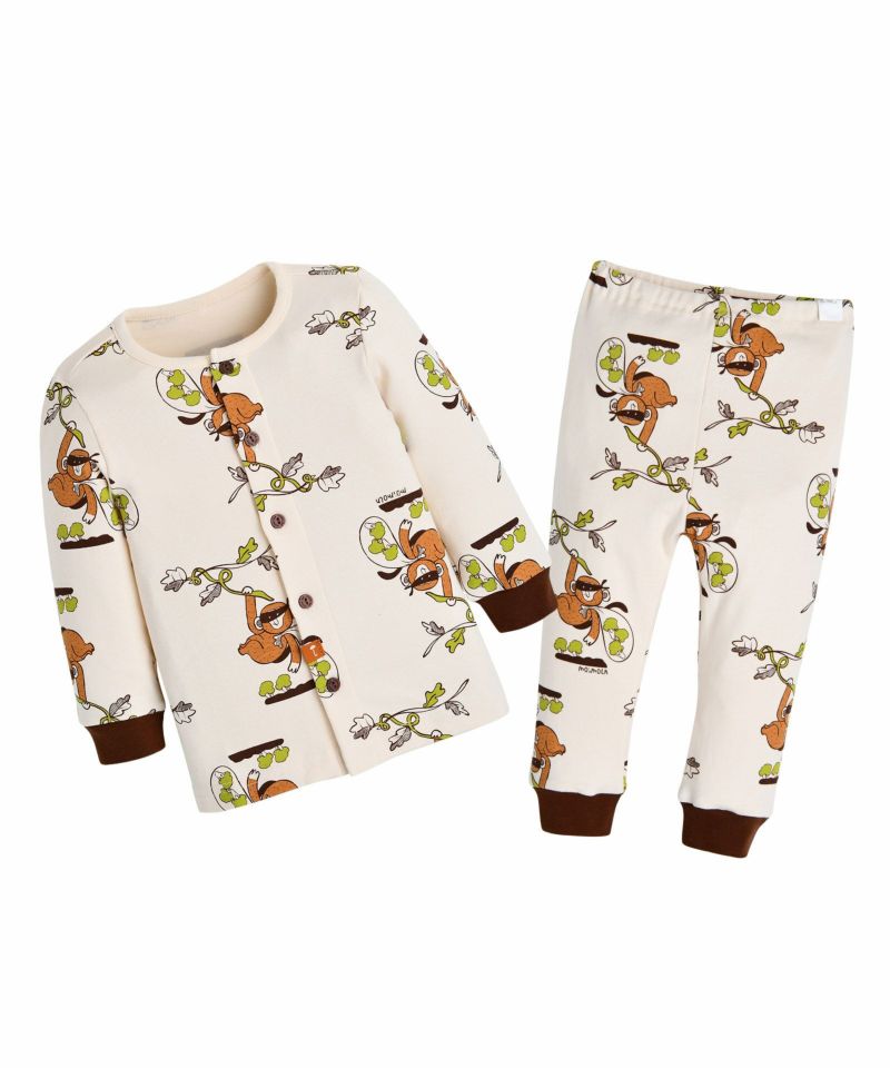 かわいい猿の柄とボタンや手首のカラーポイントなどの細かい部分までこだわった可愛いルームウェアです。