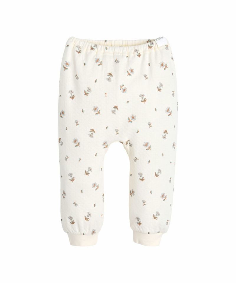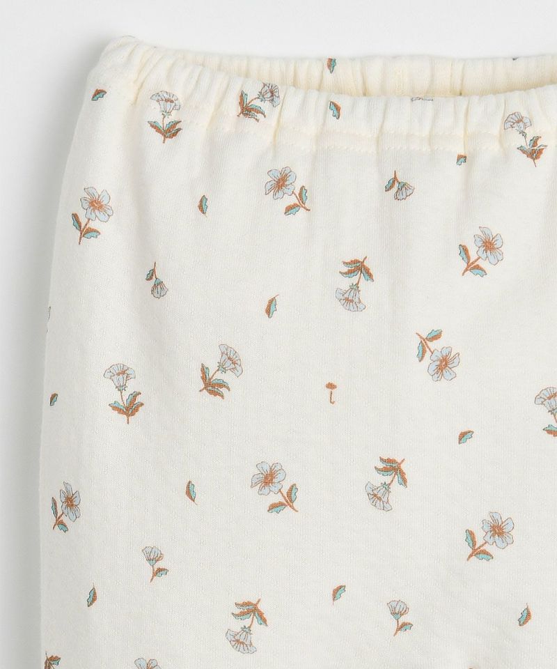 フラワーモチーフのルームウェア。手や足がリブになっているので暖かく動きやすいアイテムです。