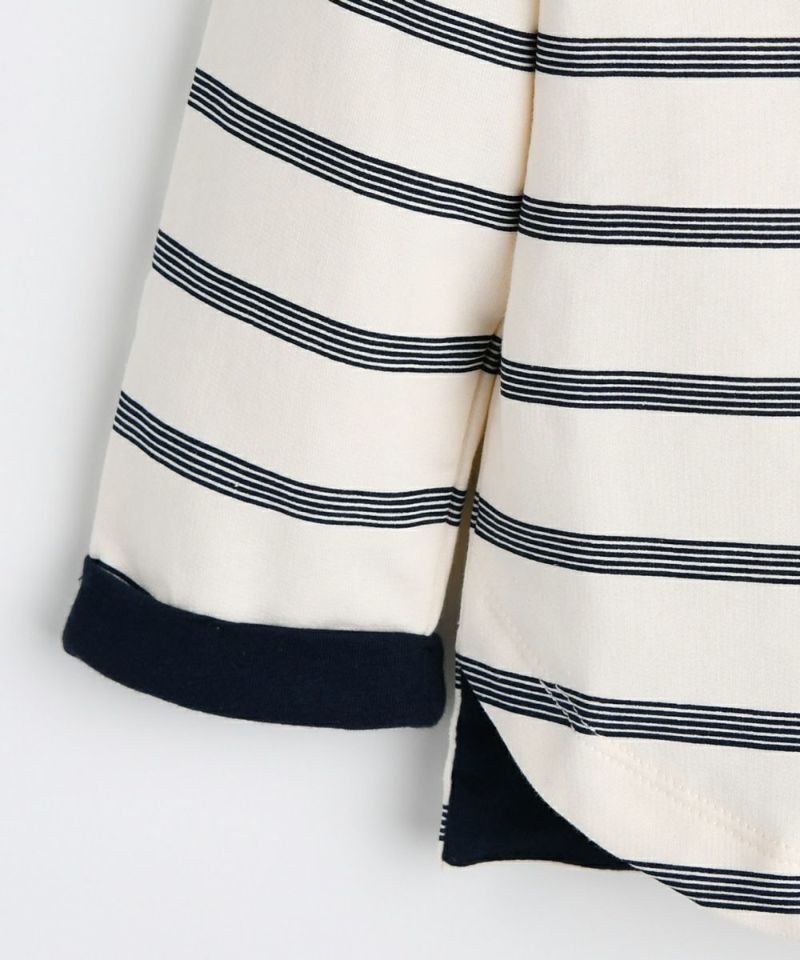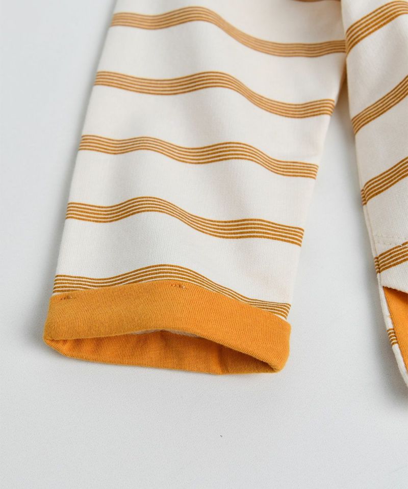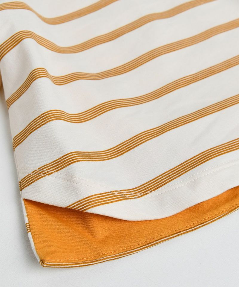 ボーダーTシャツとバギーパンツがセットになっているアイテム。デイリーからお出かけまで幅広いシーンで着用いただけます。