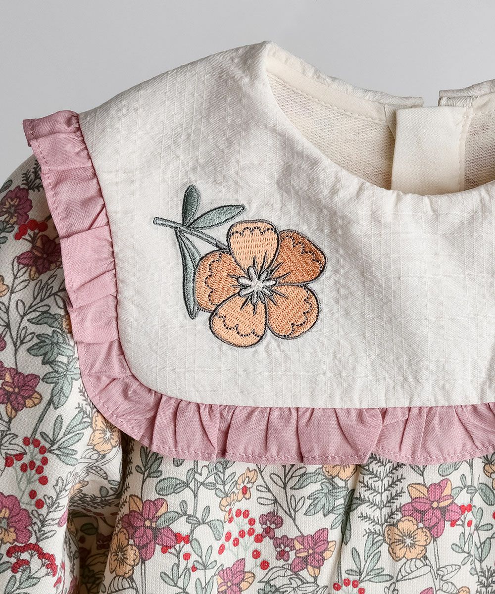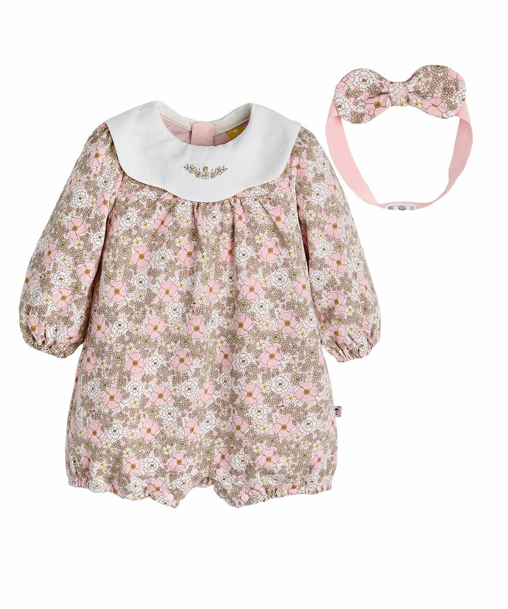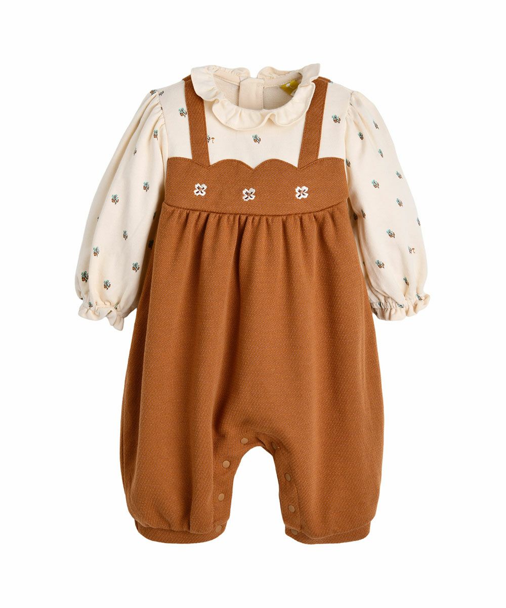 【3点セット】ラインフラワーカバーオール&レギンス&帽子