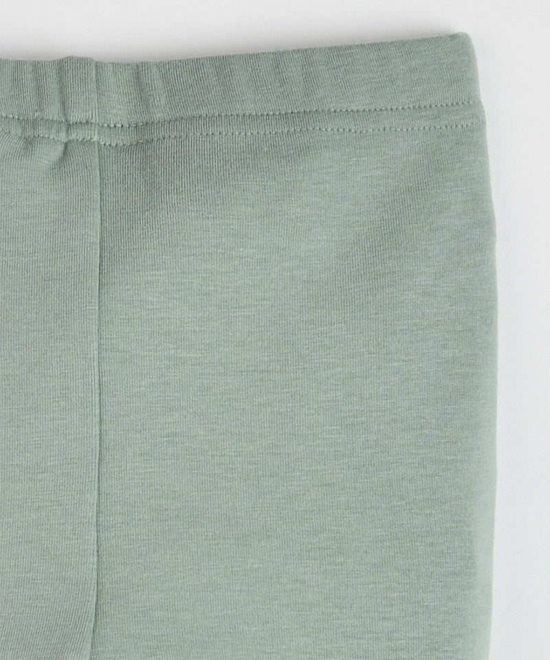 柔らかくて薄い暖かい素材のレイヤード型ウォーマーレギンス。足首部分にニットリブ素材で切り替えているのがポイント。ストレッチもしっかり効いていて、寒い冬のデイリーアイテムにおすすめです。