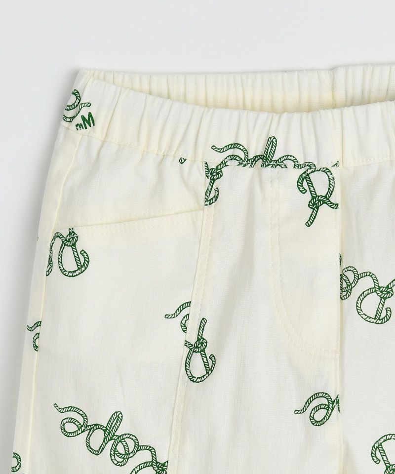スパン性の良い綿とリネンが組み合わさった素材の4分丈パンツ。きれいなアイボリーカラーにとレタリングがポイントで、様々なコーディネートが楽しめるアイテムです。*カタログ掲載商品