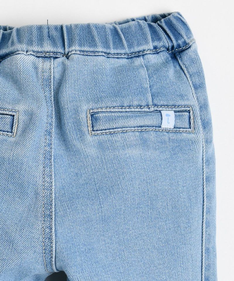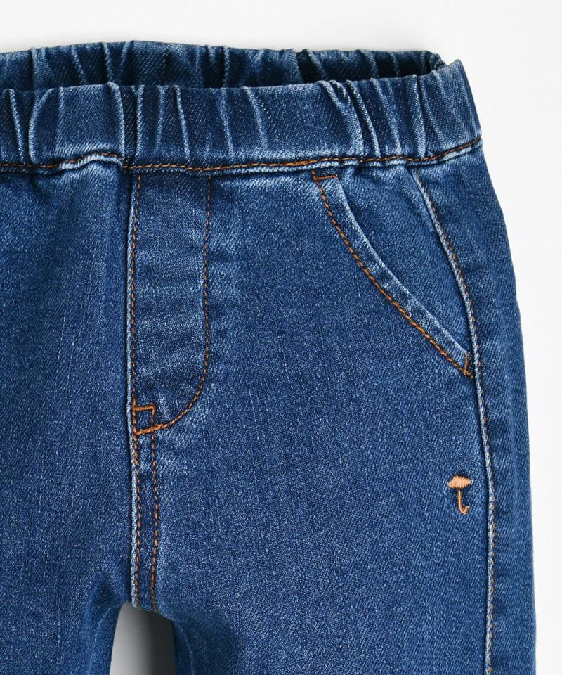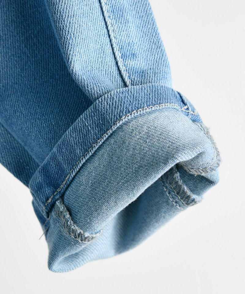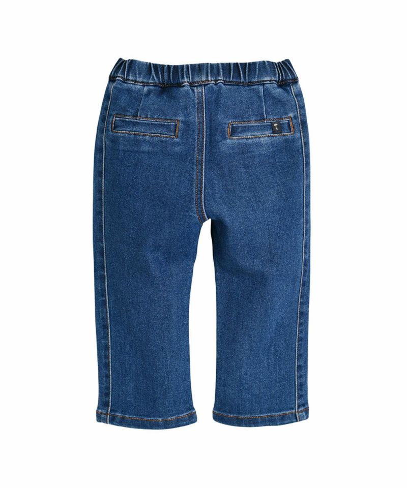 少しワイドな幅ですらりとしたストレートフィットのデニムパンツ。前からでも見えるズボンの横線とこだわった切開がポイントで、ティモ デニムジャケット(M251JKG04P)とのコーディネートがおすすめです。