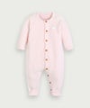 軽量で柔らかく、伸縮性に優れたモコモコニット素材の長袖カバーオール。暖かい色味のパステルトーンカラーにウッド調のボタンが付いて、脱着もスムーズにおこなえます。胸元にはさりげなくブランドロゴのワッペンが付き。お子さまのディリーウェアとしてはもちろん、ギフトにもおすすめの商品です。同素材ででルームベスト(M254JJN07P)、スリーパー(M254JSN05P)もございます。