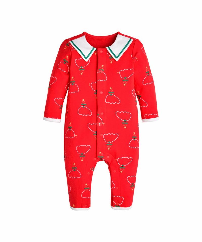 コットンモーダル素材を使いストレッチ性を考慮した楽で使いやすいアイテム。サンタさんの顔プリントと白い襟のグリーンのラインがポイントの帽子セットのカバーオールセットで、プレゼント用にもおすすめ。クリスマス(Christmas)にもぴったりです♪