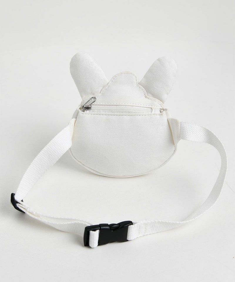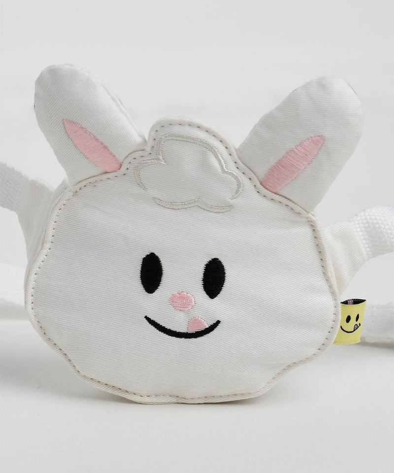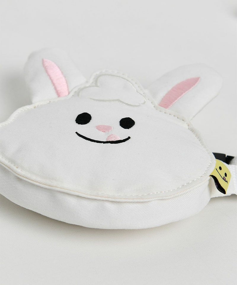 ノーティッドのクリームバニーの顔の形をしたウエストバッグ。立体的な耳と顔の刺繍がポイントのアイテムです。